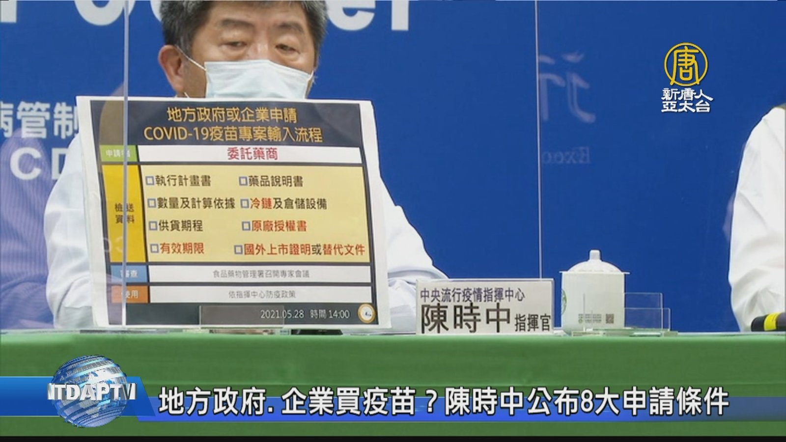 台灣疫苗採購不易,還屢遭中共政治干擾,台灣政府面對地方政府、企業都想自行買疫苗,現在又有宗教團體佛光山,表明要申請購買嬌生疫苗,指揮官陳時中今天(28日)公布疫苗專案輸入流程,表示申請者務必是藥商,並檢送一定資料,送食藥署審查後才能使用。 //asset1.ntdtv.com.tw/public/uploads/assets/2021/05/28/2021-05-28-60b0e66b623a5.mp4 疫苗|中共肺炎|武漢肺炎|疫情|防疫|中共病毒|新型冠狀病毒2021-05-28 20:45:33