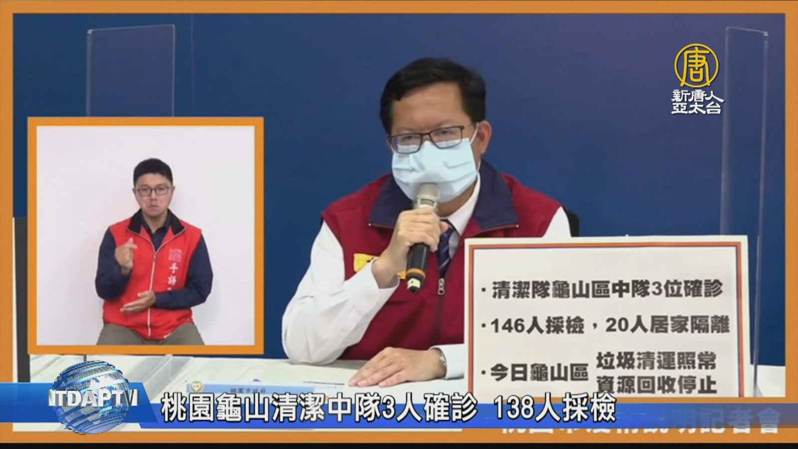 28日,桃園市新增22起(含校正回歸1例)本土確診案例。桃園市長鄭文燦下午疫情說明會表示,確診者當中,有3位是龜山區清潔中隊隊員,目前分部的百名隊員已全部採檢,結果是3人呈現陽性、80人陰性,56人還在檢驗中。28日龜山區垃圾清運工作,由臨近的清潔中隊支援,資源回收工作則停止一天。 //asset2.ntdtv.com.tw/public/uploads/assets/2021/05/28/2021-05-28-60b0f1e7660c7.mp4 中共肺炎|武漢肺炎|疫情|防疫|中共病毒|新型冠狀病毒|疫苗|龜山區|清潔隊|環保局|桃園2021-05-28 21:32:49