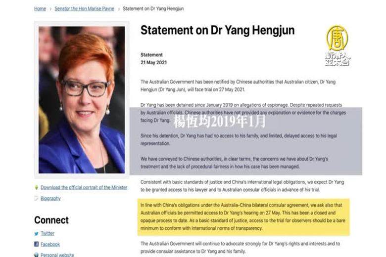 楊恆均案北京開審 澳大利亞大使被拒旁聽