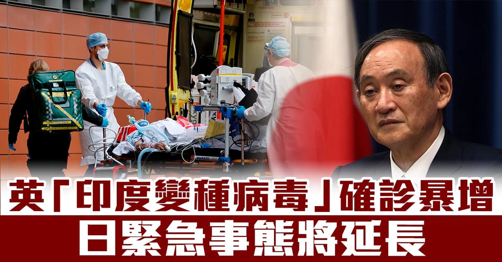 英「印度變種病毒」確診暴增 日緊急事態將延長