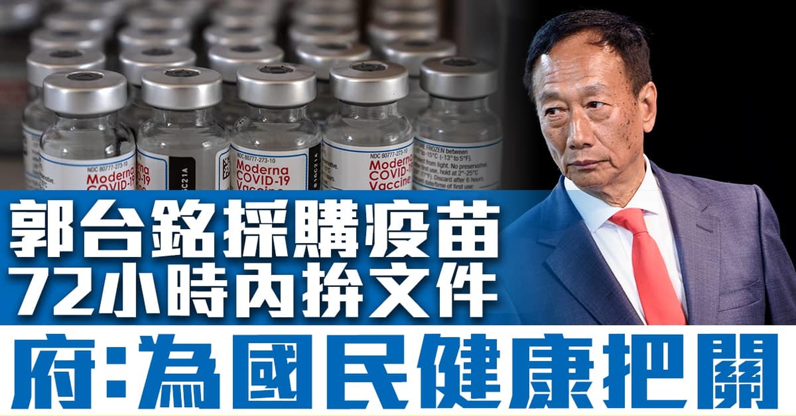郭台銘採購疫苗72小時內拚文件 府:為國民健康把關