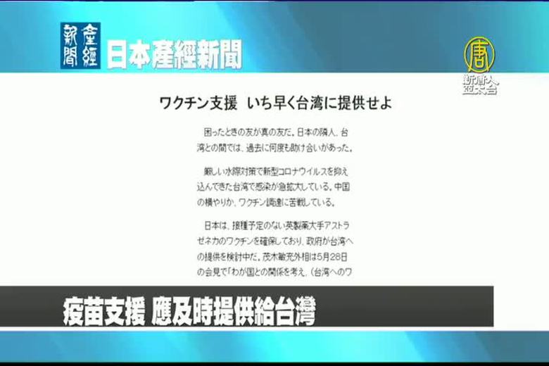 新聞首先來看到,疫苗有好消息!日本NHK報導,日本政府表示,最快明天4號,就會向台灣提供120萬劑的AZ疫苗。《產經新聞》則指出,是124萬劑AZ疫苗,運輸機明天就會抵達台灣。而台灣媒體消息指出,這批疫苗明天中午從東京成田機場起飛,由日航載運來台,明天下午兩點40分左右抵達台灣,對此,台灣防疫指揮官陳時中和外交部,都沒有證實或否認。總統府發言人張惇涵晚間表示,期望能有更進一步的好消息與發展,另外還有平面引述消息人士指出,這是日本手中全部的AZ現貨,等於是有多少就給台灣多少,相當夠義氣。 //asset2.ntdtv.com.tw/public/uploads/assets/2021/06/03/2021-06-03-60b8c72975d2d.mp4 中共肺炎|武漢肺炎|日本|疫苗2021-06-03 20:10:38