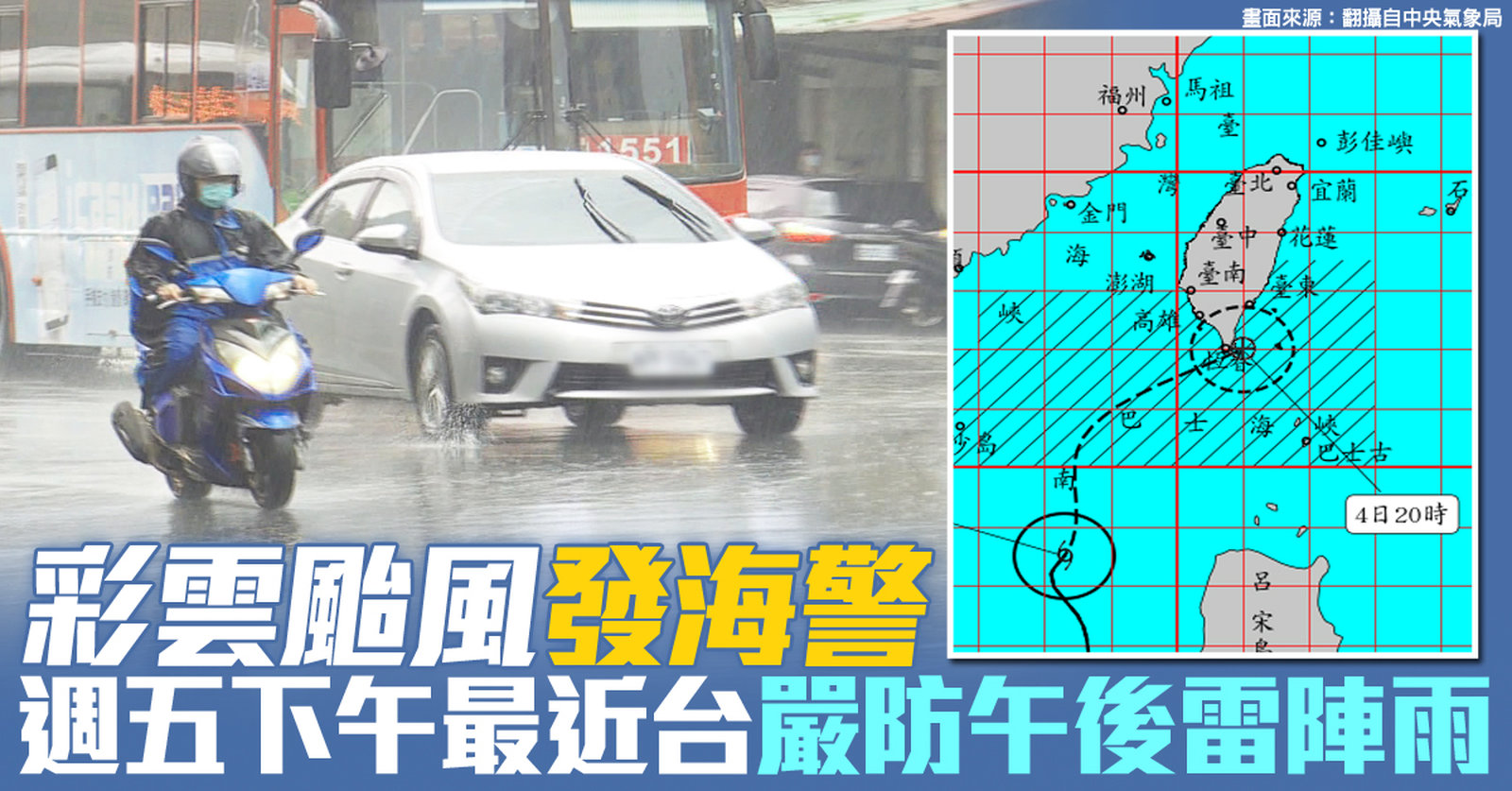 彩雲颱風發海警 週五下午最近台嚴防午後雷陣雨