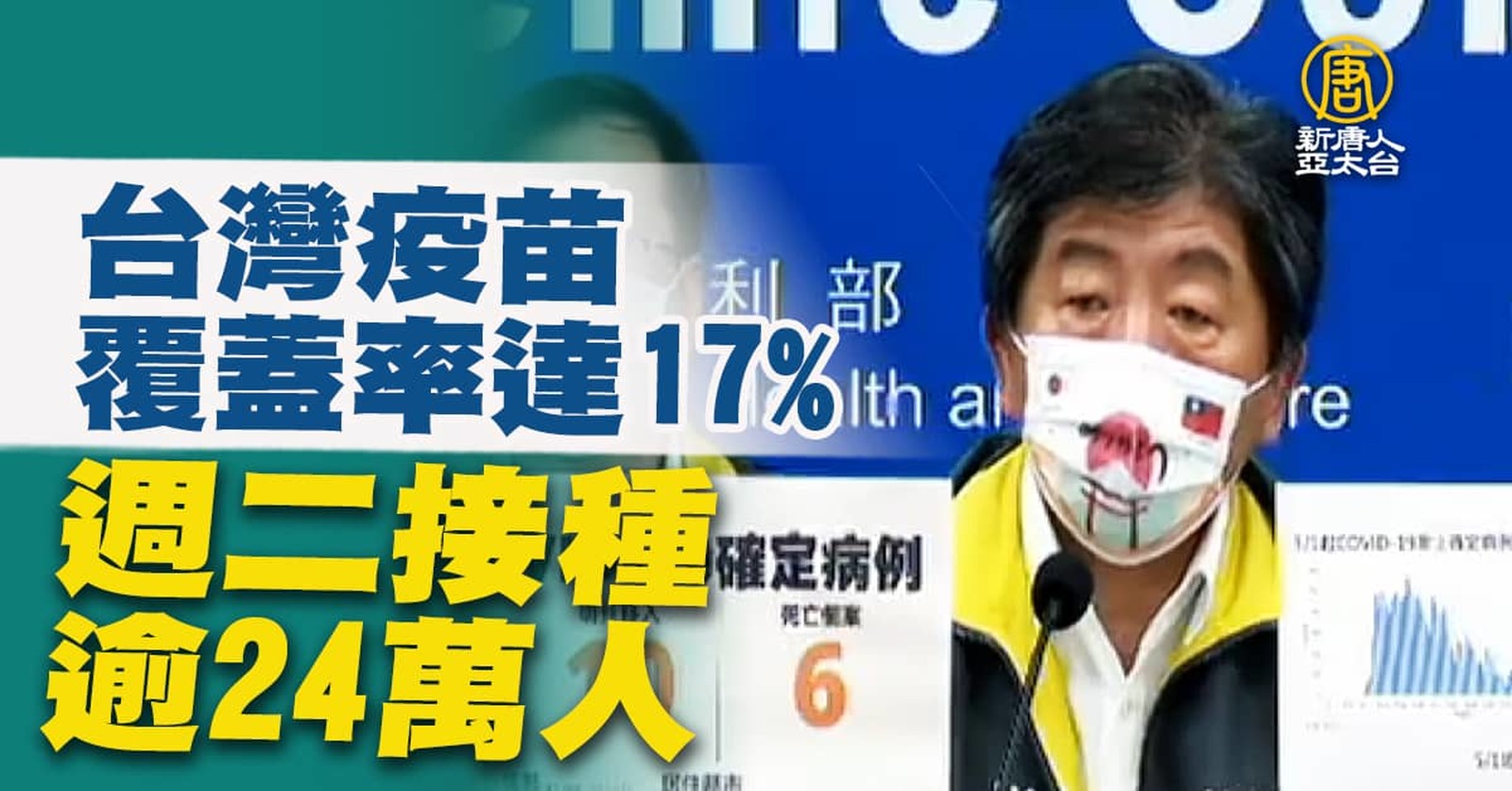 台灣疫苗覆蓋率達17% 週二接種逾24萬人