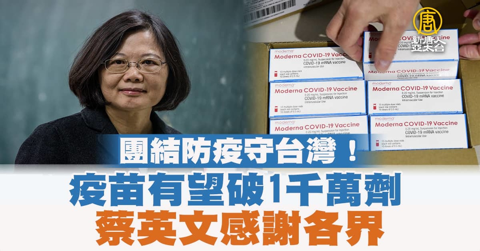團結防疫守台灣!疫苗有望破1千萬劑 蔡英文感謝各界