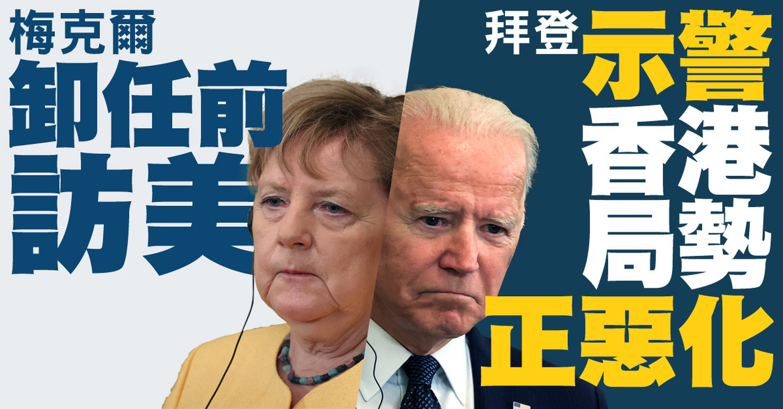 梅克爾卸任前訪美 拜登示警香港局勢正惡化