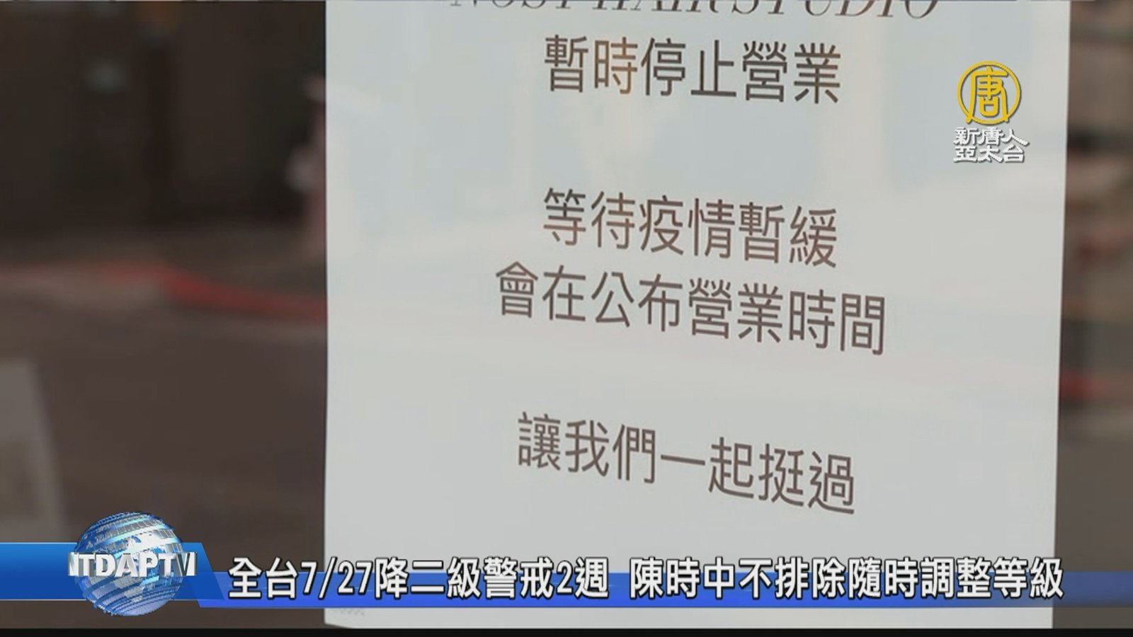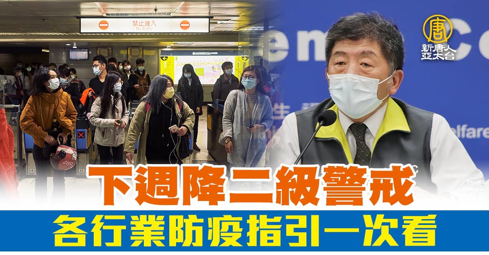 好,台灣將從下週二起,全國降為二級警戒。放餐飲內用、婚宴、公祭,今天指揮中心公佈各行業的降級指引,有哪些需要注意的?帶您關心。 //asset1.ntdtv.com.tw/public/uploads/assets/2021/07/23/2021-07-23-60fab87e00bdd.mp4 中共肺炎|防疫|疫情2021-07-23 20:35:20