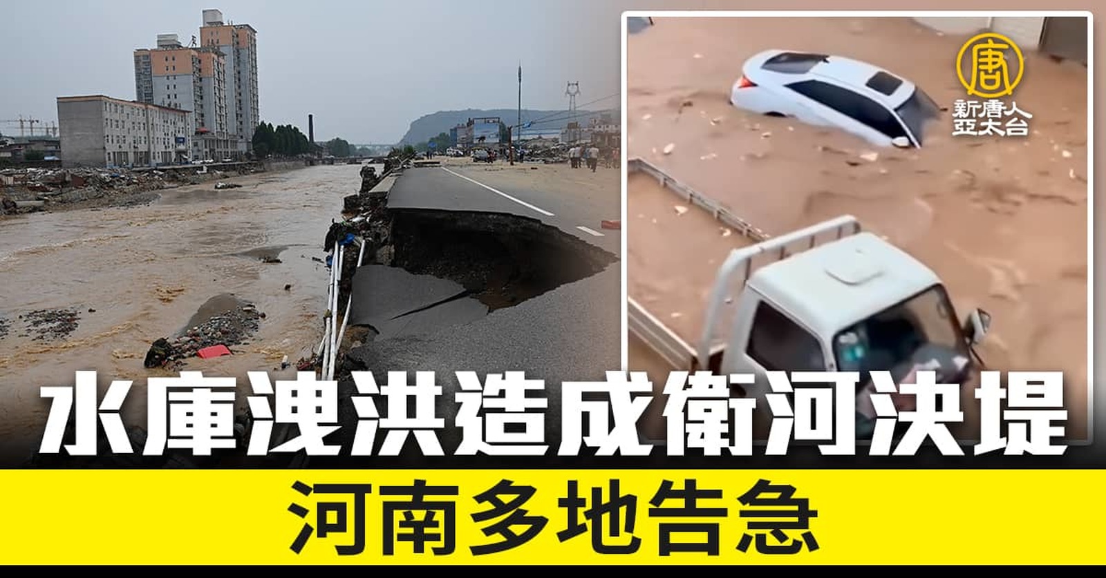 水庫洩洪造成河南大面積洪災,衛河下游的新鄉段7月22晚決堤,23號清晨又洩洪,上午,衛河鶴壁段決堤,附近村莊被淹沒,衛河沿岸、衛輝、新鄉輝縣等地紛紛告急。此外,有民眾透露日前鄭州京廣路隧道淹死很多人。 //asset1.ntdtv.com.tw/public/uploads/assets/2021/07/23/2021-07-23-60fac4681a8fc.mp4 中國河南|鄭州|淹水|水災|720大洪災|新鄉輝縣|水庫洩洪|決堤2021-07-23 21:28:40