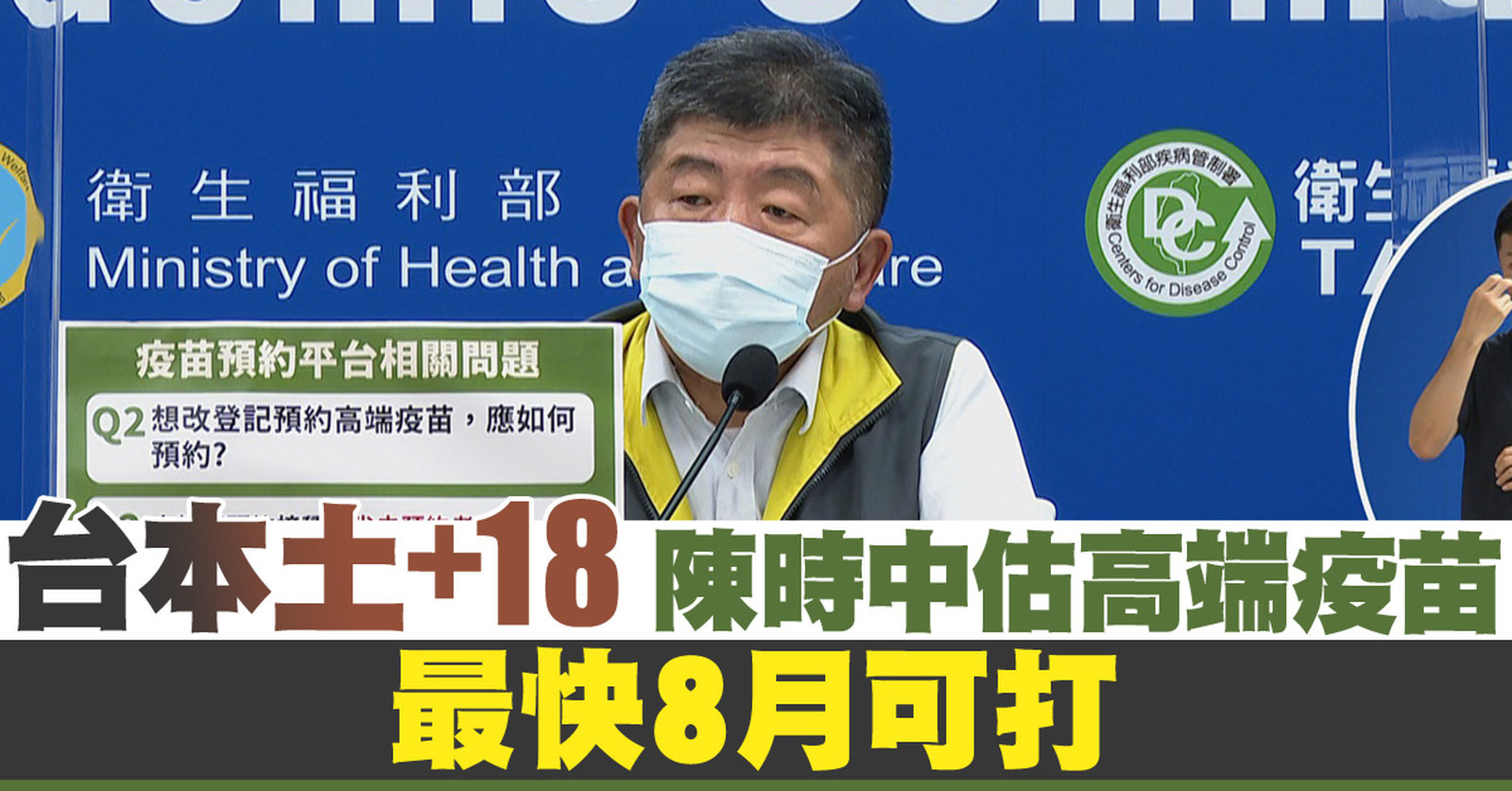 台本土+18 陳時中估高端疫苗最快8月可打
