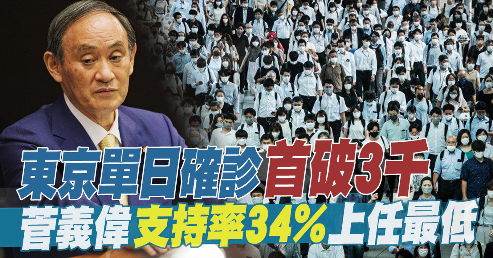 東京單日確診首破3千 菅義偉支持率34%上任最低