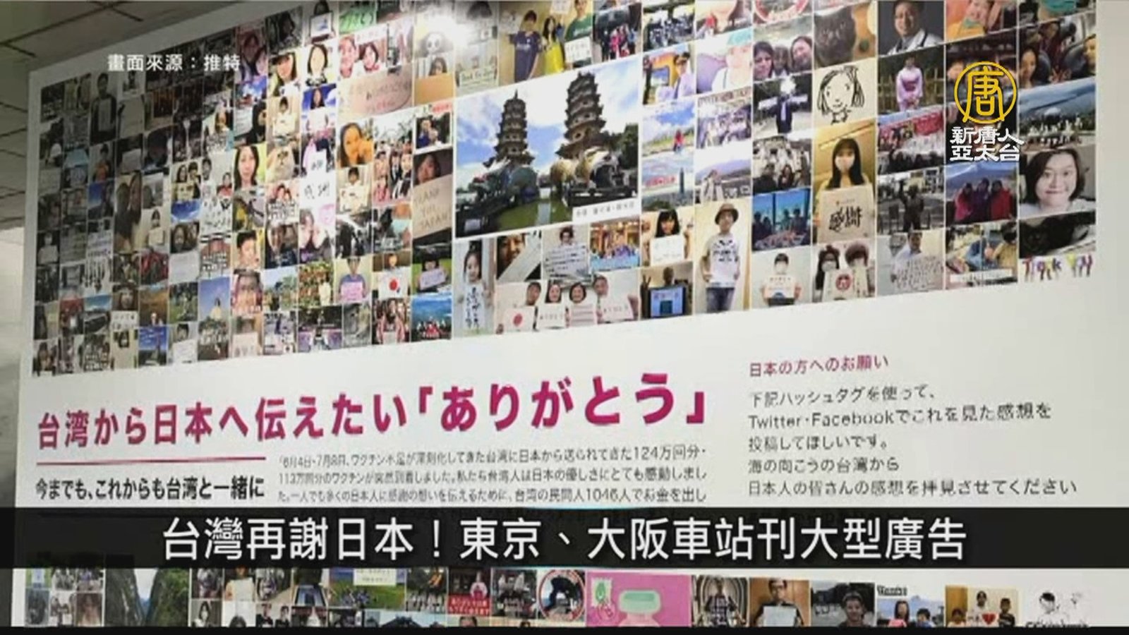 台灣再謝日本!東京、大阪車站刊大型廣告|寰宇掃描
