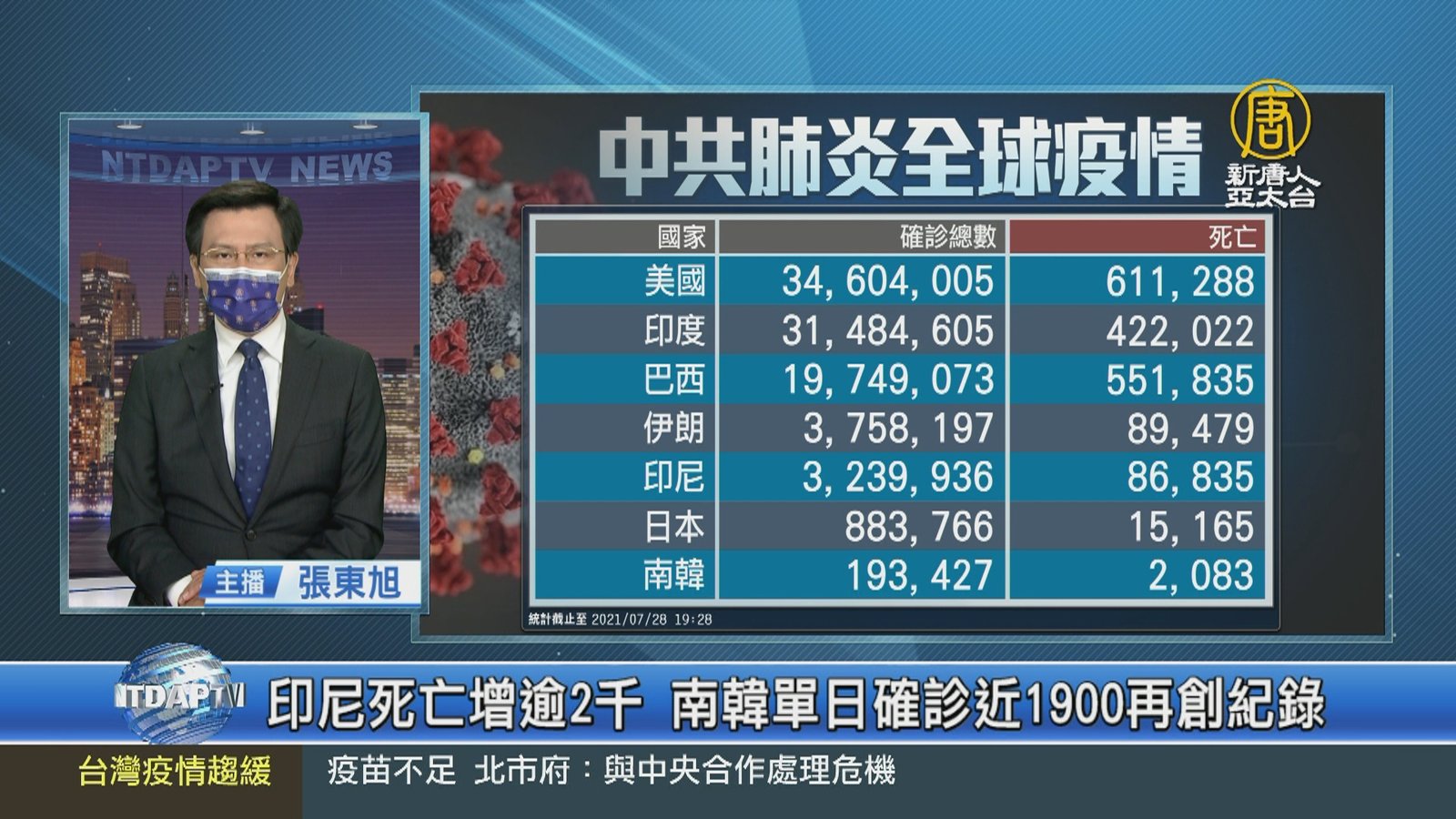 印尼死亡增逾2千 南韓單日確診近1900再創紀錄