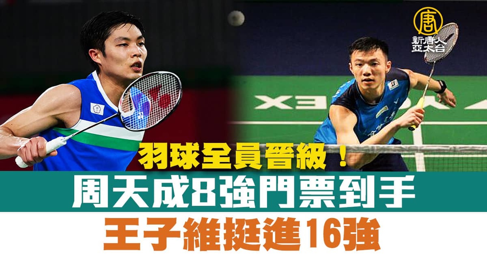 羽球全員晉級!周天成8強門票到手.王子維挺進16強