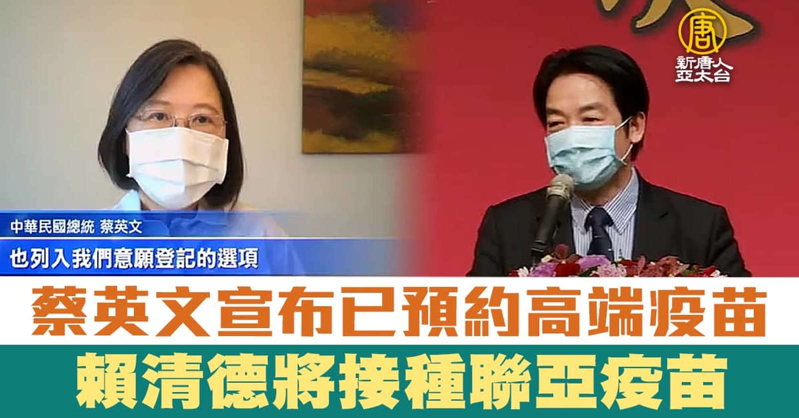 台疫苗接種率25%提前達標!蔡英文:將接種國產疫苗