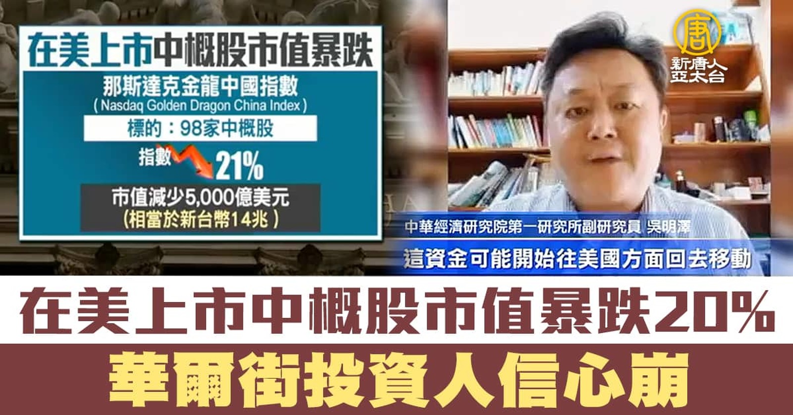 在美上市中概股市值暴跌20% 華爾街投資人信心崩