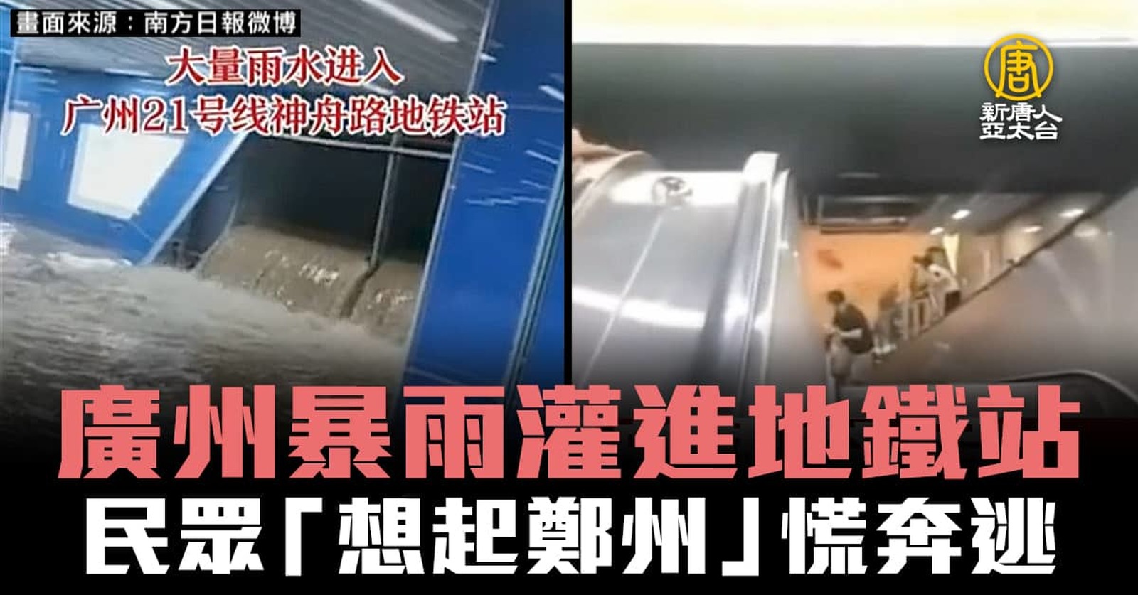 廣州暴雨灌進地鐵站 民眾「想起鄭州」慌奔逃
