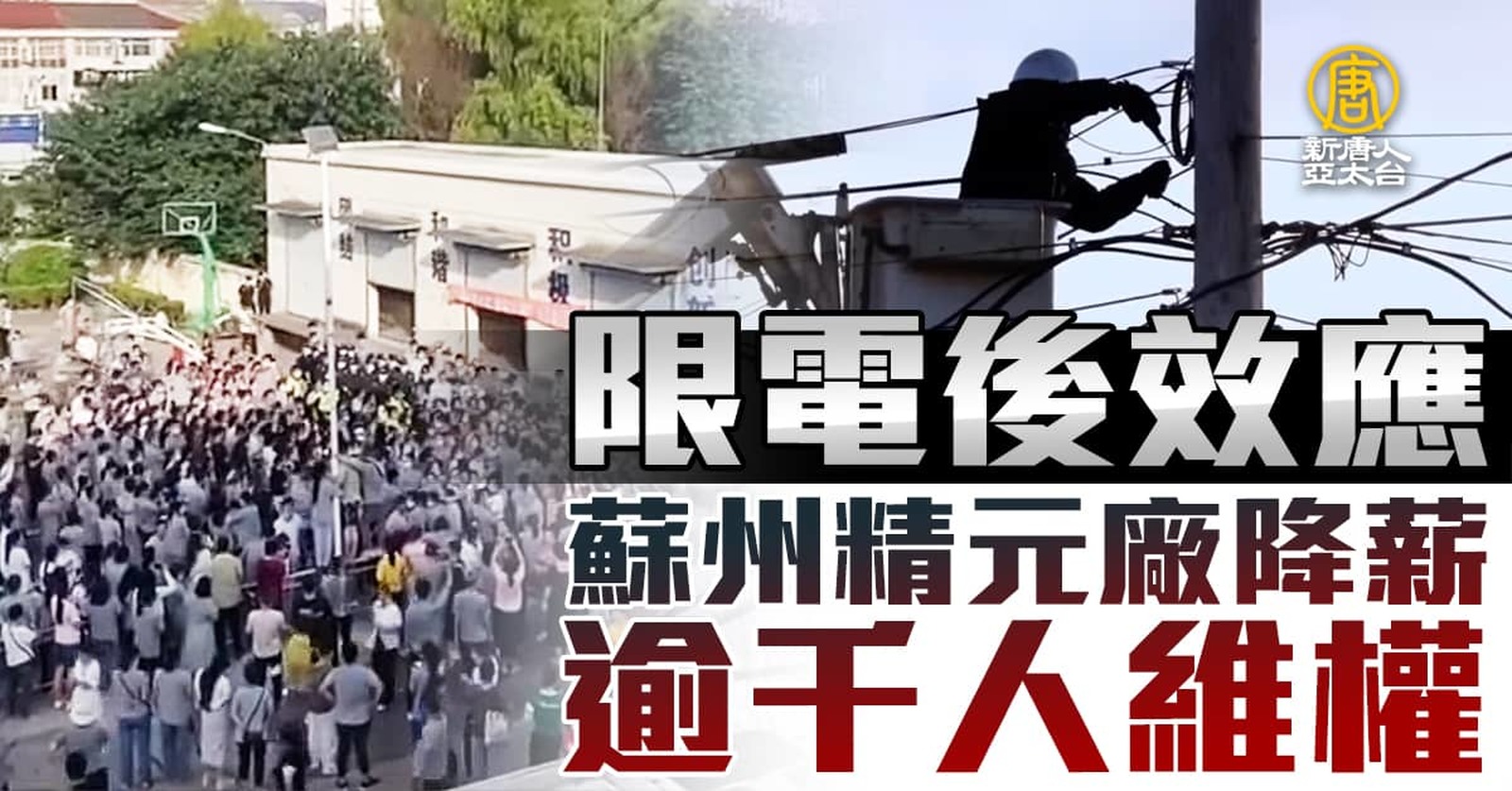 中國多地限電不僅造成原物料飛漲、產業鏈大亂,在江蘇更引發大規模抗議潮。10月中旬,蘇州吳江精元電腦公司,因為限電放假時間增多,「小時工」被降薪及裁員,引來上千名員工連續多日上街維權,大批警察到場維穩。 //asset3.ntdtv.com.tw/public/uploads/assets/2021/10/14/2021-10-14-61682d814f152.mp4 中國|限電|江蘇|抗議潮|蘇州|吳江精元電腦|裁員|維權|中共維穩|202110142021-10-14 22:15:08