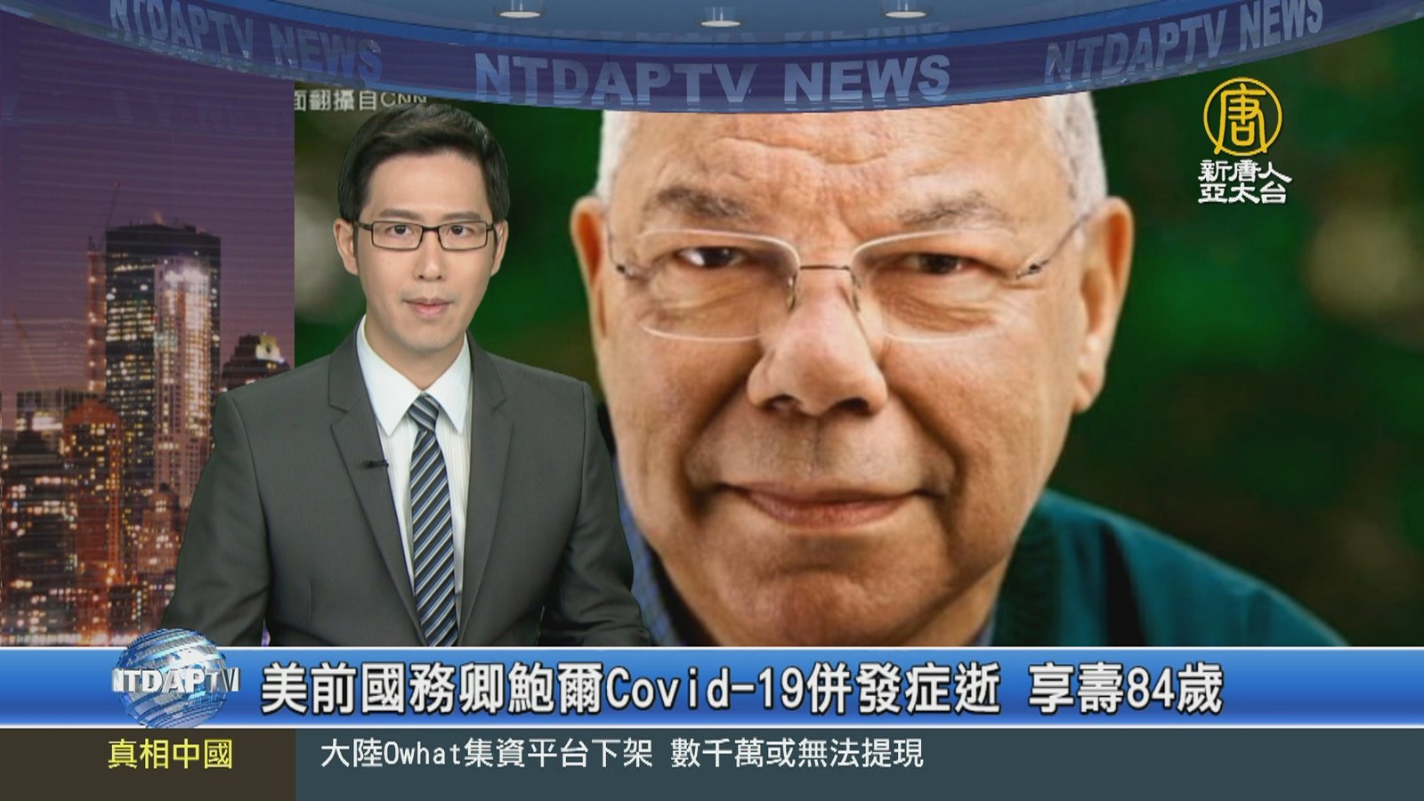 插播一則最新消息,美國前國務卿鮑爾,因Covid-19併發症逝世,享壽84歲。鮑爾在2000年被美國總統喬治布希,提名為國務卿,是首位任職美國國務卿的非裔美國人。他在1990的波斯灣戰爭中,擔任參謀長聯席會議主席,是第一位擔任這一美軍最高軍職的 非裔美國人。 //asset1.ntdtv.com.tw/public/uploads/assets/2021/10/18/2021-10-18-616d6c9569391.mp4 美國|前國務卿|鮑爾|中共病毒|Covid-19|202110182021-10-18 22:31:07