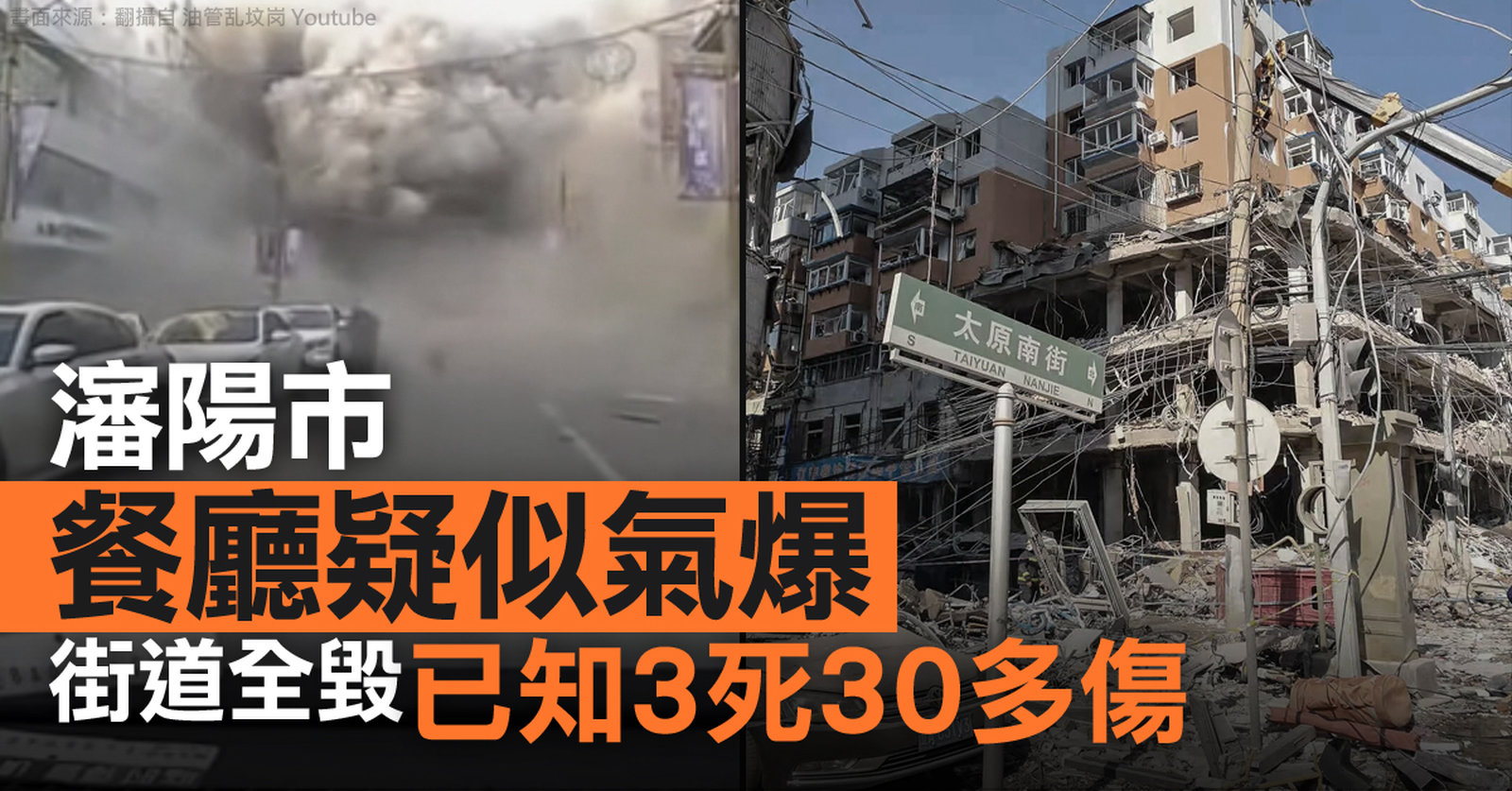 瀋陽市餐廳疑似氣爆 街道全毀已知3死30多傷