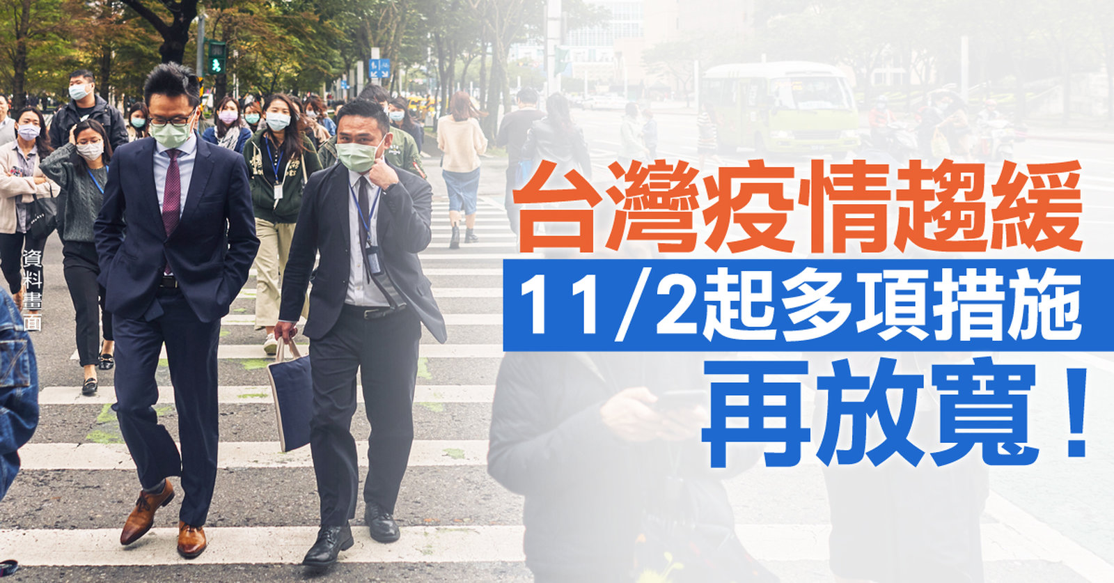 台灣疫情趨緩 11月2日起多項措施再放寬!