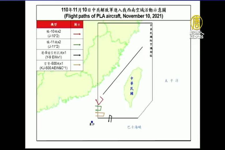 歡迎回來。插播最新消息,美國參眾議員昨天搭軍機訪台,當行程仍在進行,中共軍機又擾台。中華民國國防部晚間發布,今天有六架中共軍機,闖進台灣西南防空識別區,包括2架殲-10、2架殲-11與空警-500、還有運-9通信對抗機,中華民國空軍派遣空中巡邏兵力應對、廣播驅離、並以防空飛彈追監。 //asset3.ntdtv.com.tw/public/uploads/assets/2021/11/10/2021-11-10-618bc49486be0.mp4 共機|西南空域|202111102021-11-10 21:56:28