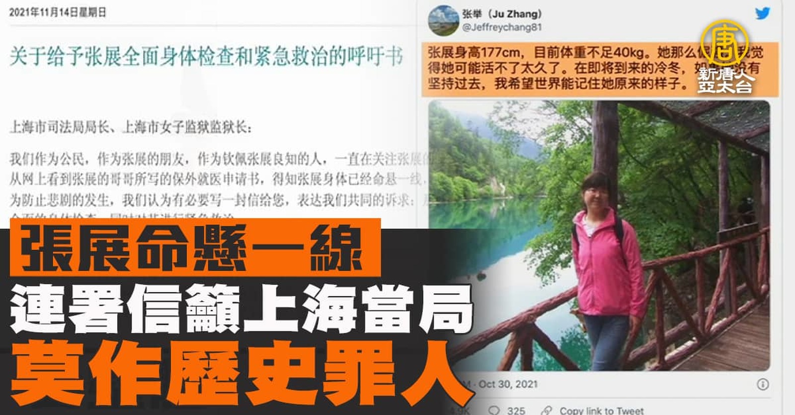張展命懸一線 連署信籲上海當局莫作歷史罪人