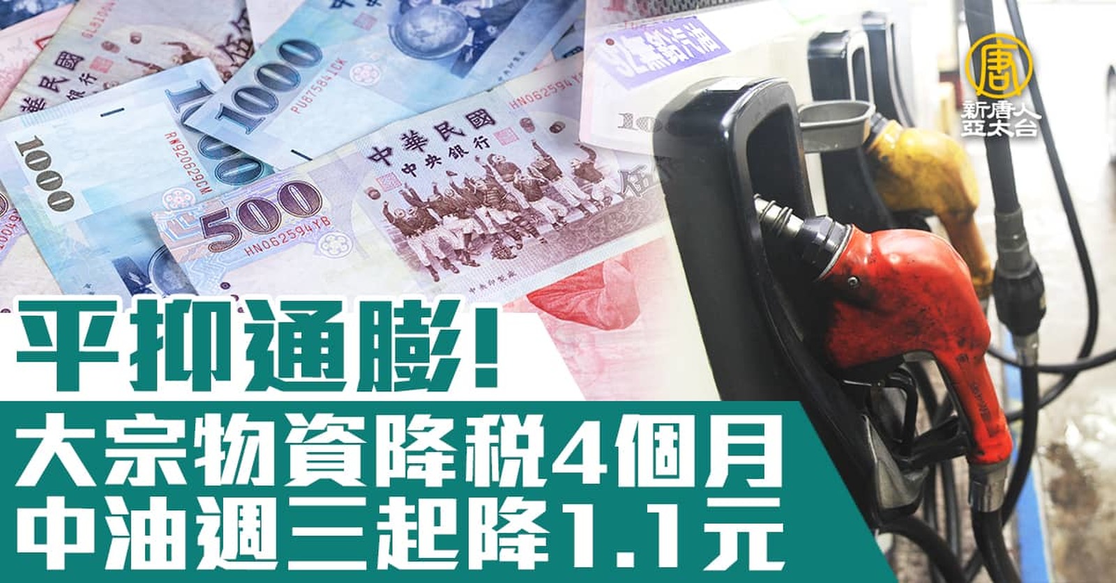 平抑通膨!大宗物資降稅4個月 中油週三起降1.1元