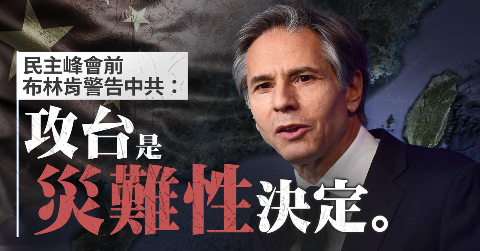 民主峰會前 布林肯警告中共:攻台是「災難性」決定