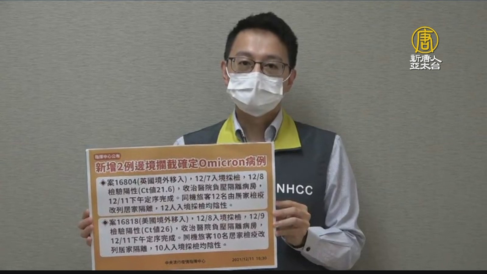 Omicron變種病毒在南非現蹤後,快速擴散全球,台灣今天新增3例Omicron境外移入個案,分別來自史瓦帝尼、英國、美國。 //asset1.ntdtv.com.tw/public/uploads/assets/2021/12/11/2021-12-11-61b497ead0945.mp4 Omicron|境外移入|突破性感染|202112112021-12-11 22:16:34
