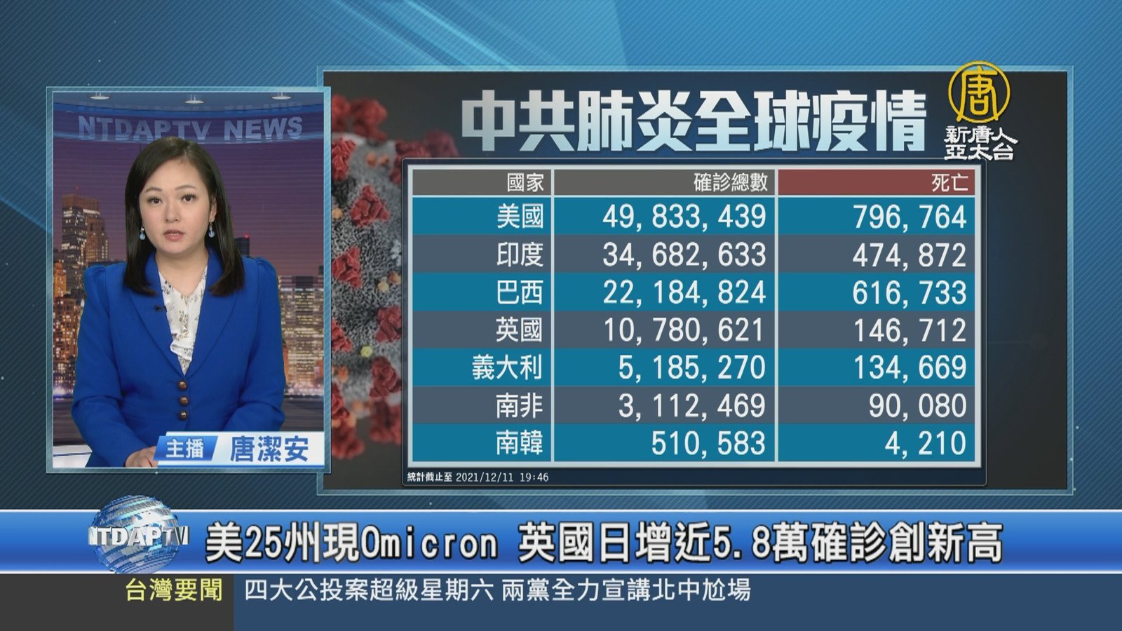 來關心中共肺炎疫情最新情況,全球確診超過2億6千919萬例,死亡5百29萬6千多人。但中共、伊朗等政權,被認為嚴重低報數據。美國境內疫情出現擴大跡象,最近一週平均每日新增確診達到11萬8千多例,比前一週高出37%。目前在美國已有25個州發現了Omicron的感染病例。英國最新研究顯示,只打2劑疫苗不足以防範感染Omicron變種病毒,但如果施打第3劑保護力將上升至70%到75%。英國單日新增5萬8千多例確診,是自今年1月9日來新高,其中增加448例Omicron感染病例,累積突破千例。隨著Omicron變 //asset1.ntdtv.com.tw/public/uploads/assets/2021/12/11/2021-12-11-61b497fcf1b78.mp4 Omicron|美國|英國|南韓|非洲|南非|疫情|防疫|中共病毒|202112112021-12-11 22:16:51