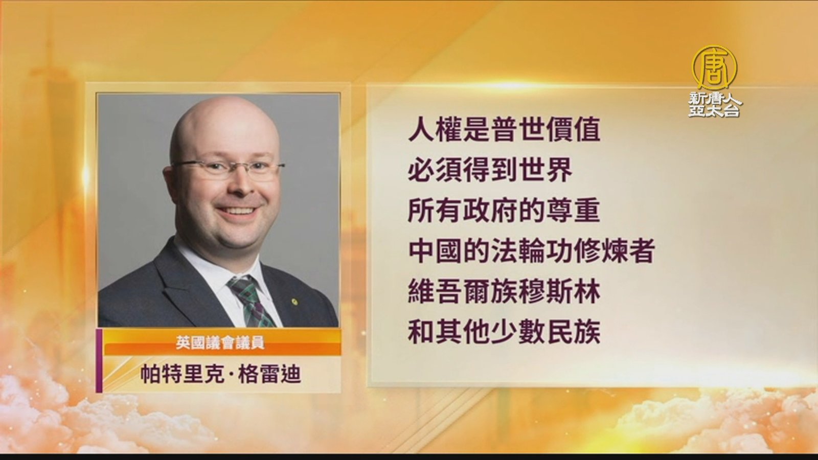 在國際人權日之際,英國多位議員致信《明慧網》,支持並聲援法輪功學員爭取人權、捍衛信仰自由的行動。議員們也呼籲英國政府,為法輪功修煉者挺身而出,採取行動捍衛信仰自由。 //asset3.ntdtv.com.tw/public/uploads/assets/2021/12/11/2021-12-11-61b49ff5cbce9.mp4 國際人權日|英國議員|明慧網|聲援法輪功學員|信仰自由|世界人權日|202112112021-12-11 22:24:07