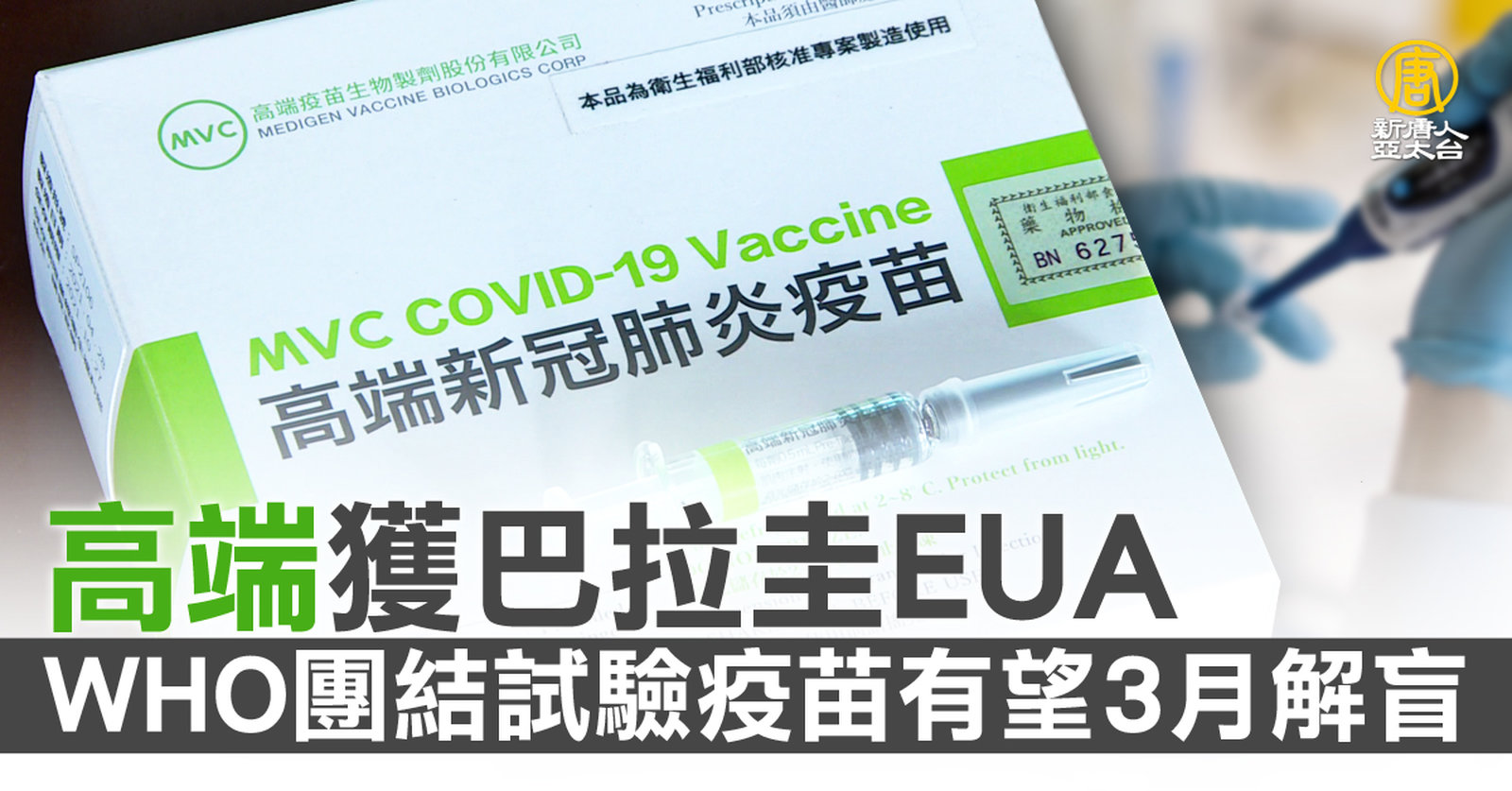 高端獲巴拉圭EUA WHO團結試驗疫苗有望3月解盲