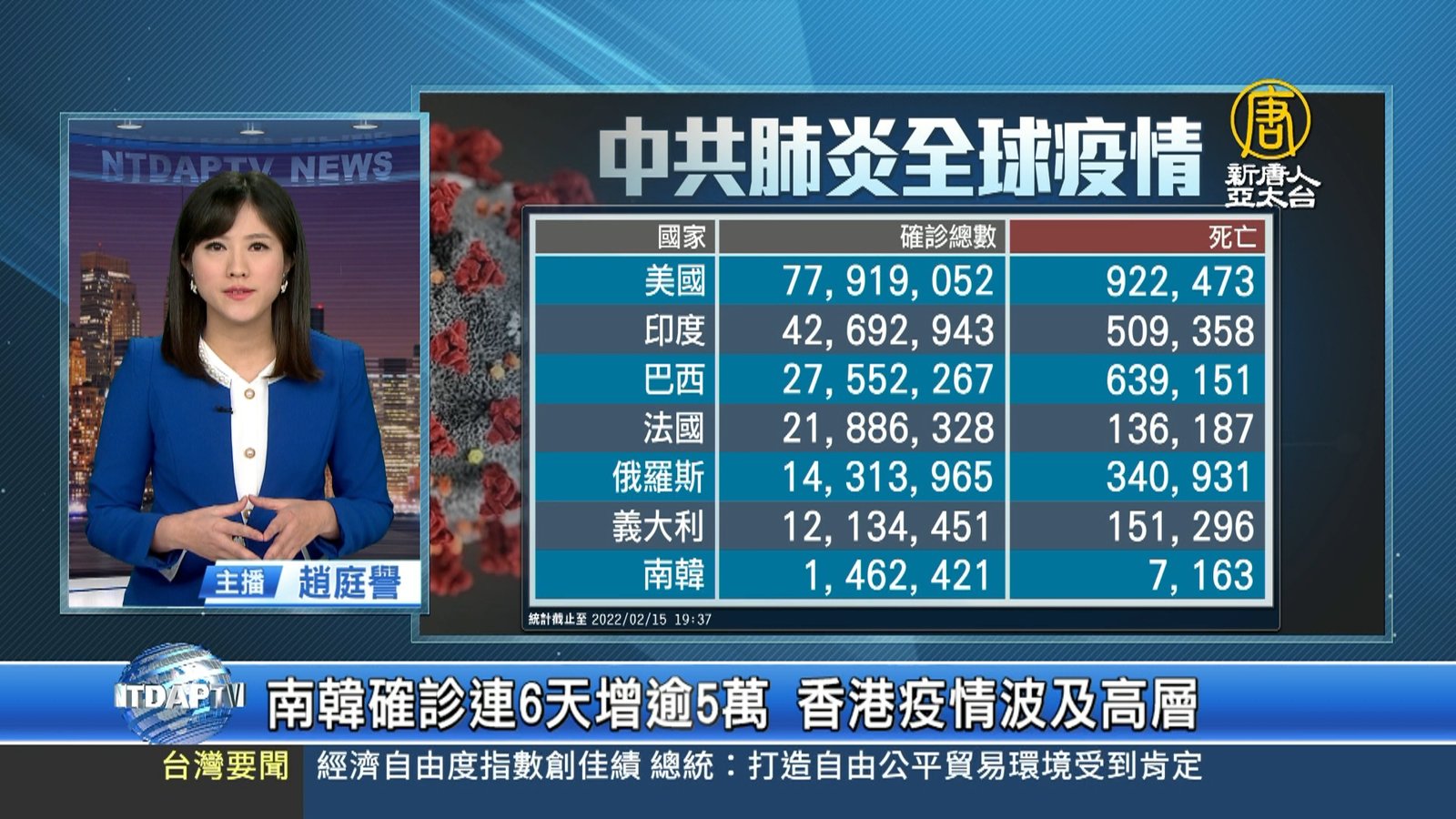 來關心中共肺炎疫情最新情況,全球確診超過4億1千3百57萬例,死亡5百82萬6千多人。但中共、伊朗等政權,被認為嚴重低報數據。亞洲方面,南韓新增5萬7千多例確診,時隔2天再創新高紀錄,連續6天單日超過5萬例,演藝圈也持續傳出藝人確診消息,包括南韓團體的恩光以及諧星金智?都確診。香港新增1千6百多例確診,還有約5千4百例初步陽性。香港政務司長李家超,家中一名外籍幫傭快篩結果初步呈現陽性,目前李家超進行居家隔離。73歲的英國王儲查爾斯王子上週第二度確診之後,她的妻子卡蜜拉也確診,兩人都已經完整接種過疫苗,也打 //asset3.ntdtv.com.tw/public/uploads/assets/2022/02/15/2022-02-15-620b9afab1dd7.mp4 香港|確診|南韓|查爾斯王子夫妻|香港政務司長|李家超|恩光|傘|金智珉|中共病毒|202202152022-02-15 22:38:44