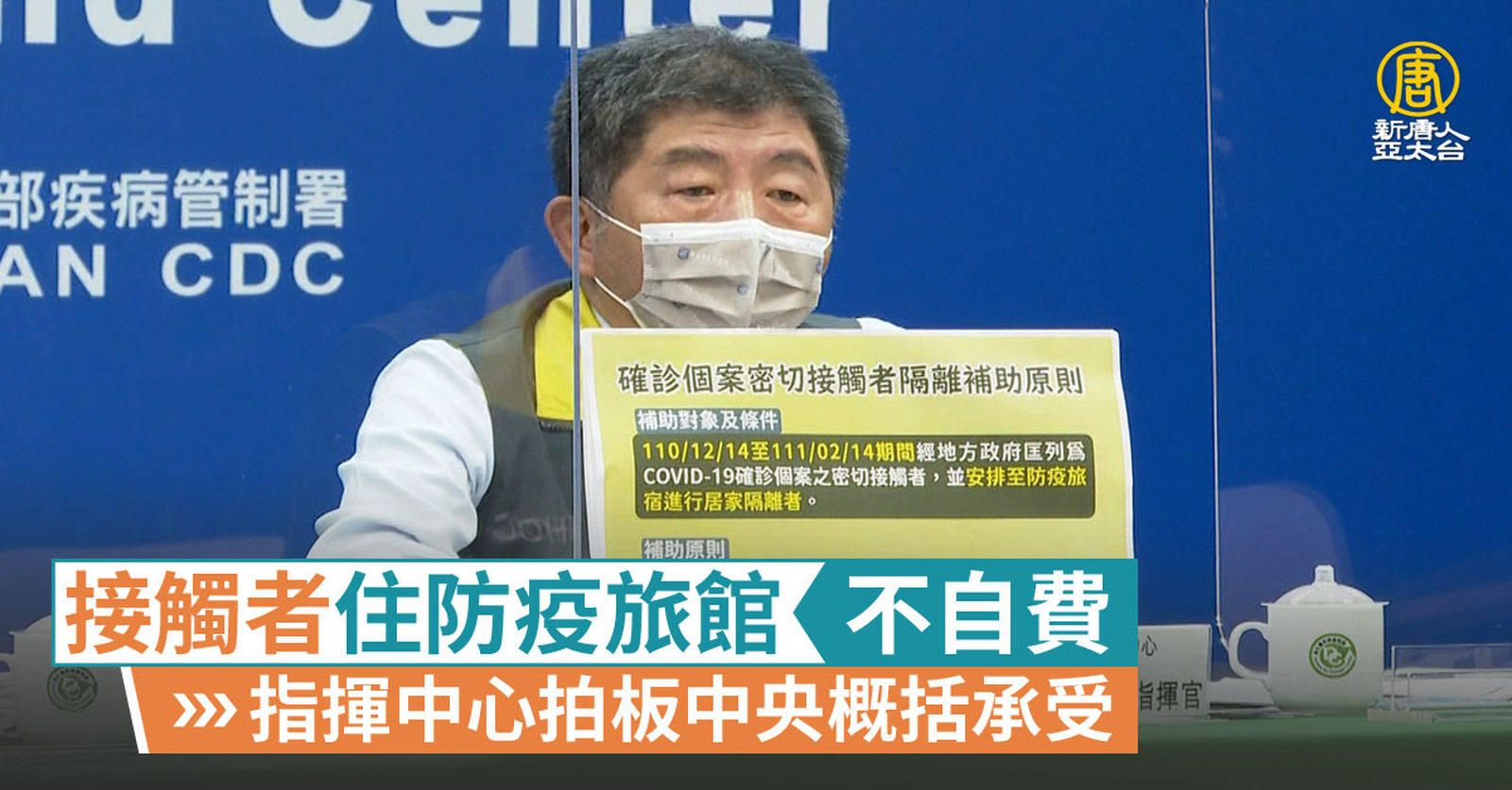 接觸者住防疫旅館不自費 指揮中心拍板中央概括承受