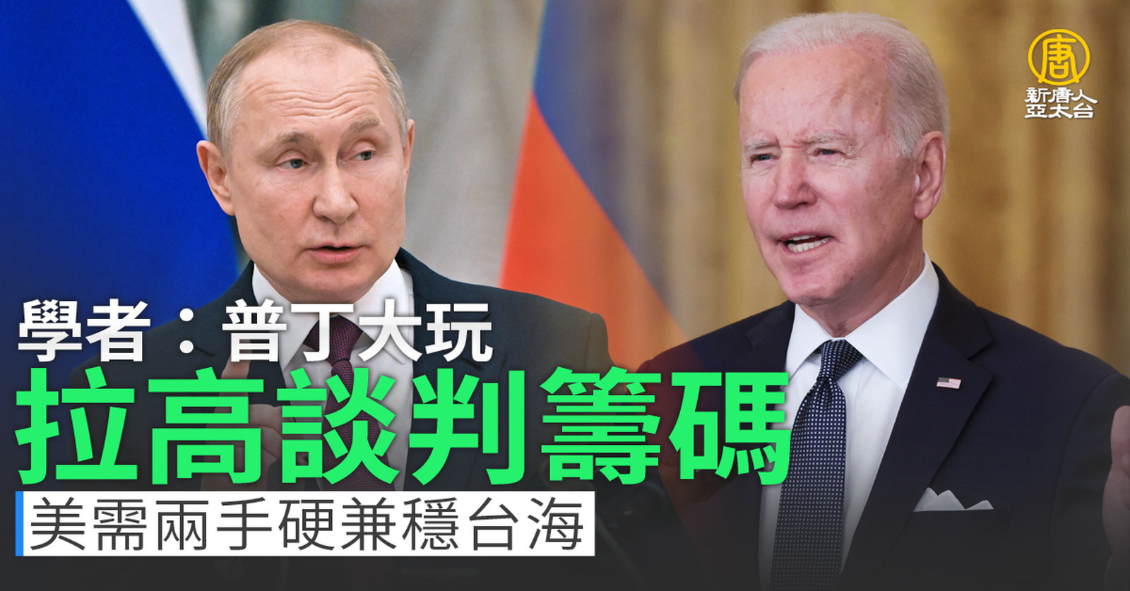 學者:普丁大玩拉高談判籌碼 美需兩手硬兼穩台海