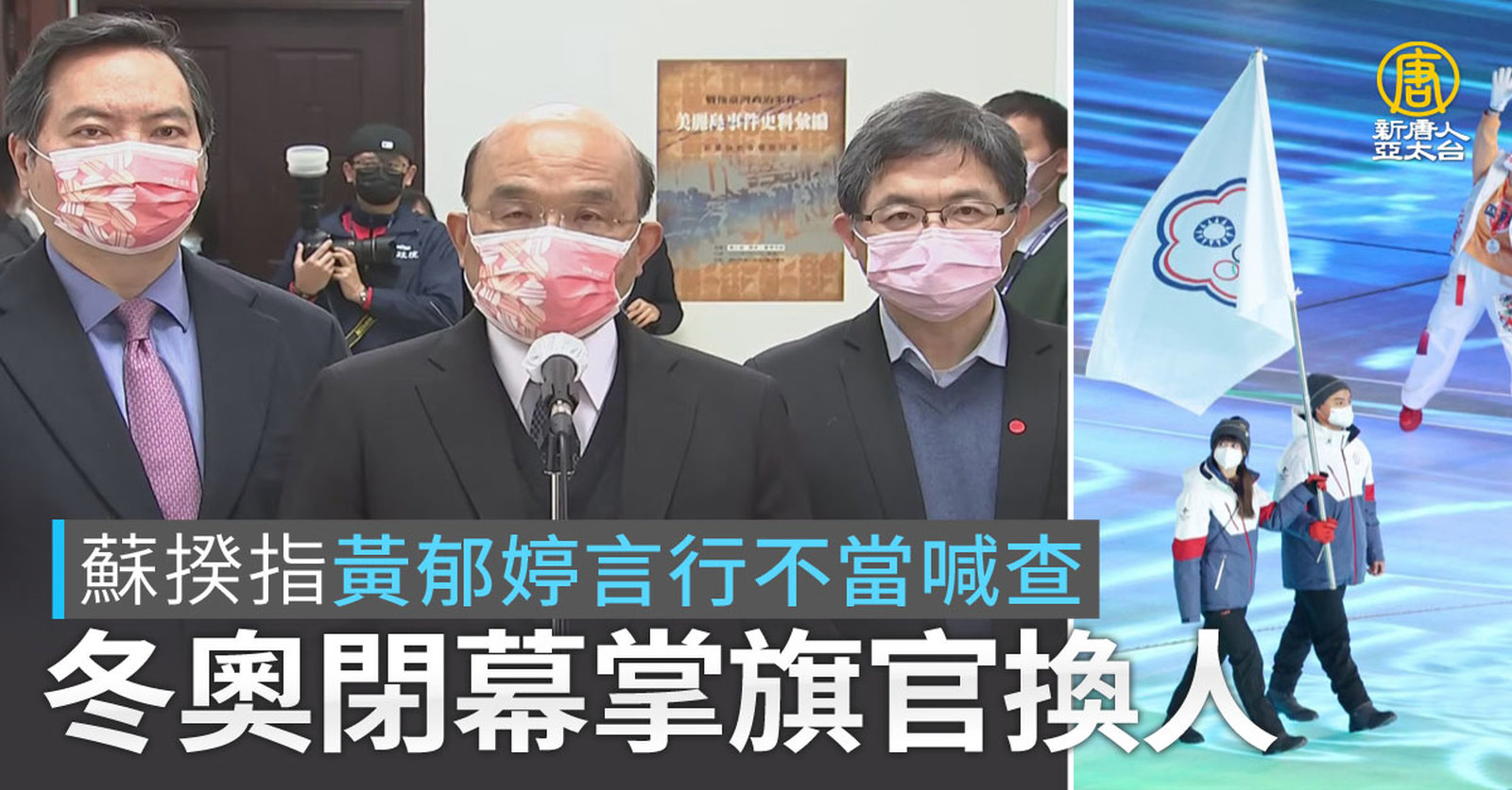 蘇揆指黃郁婷言行不當喊查 冬奧閉幕掌旗官換人