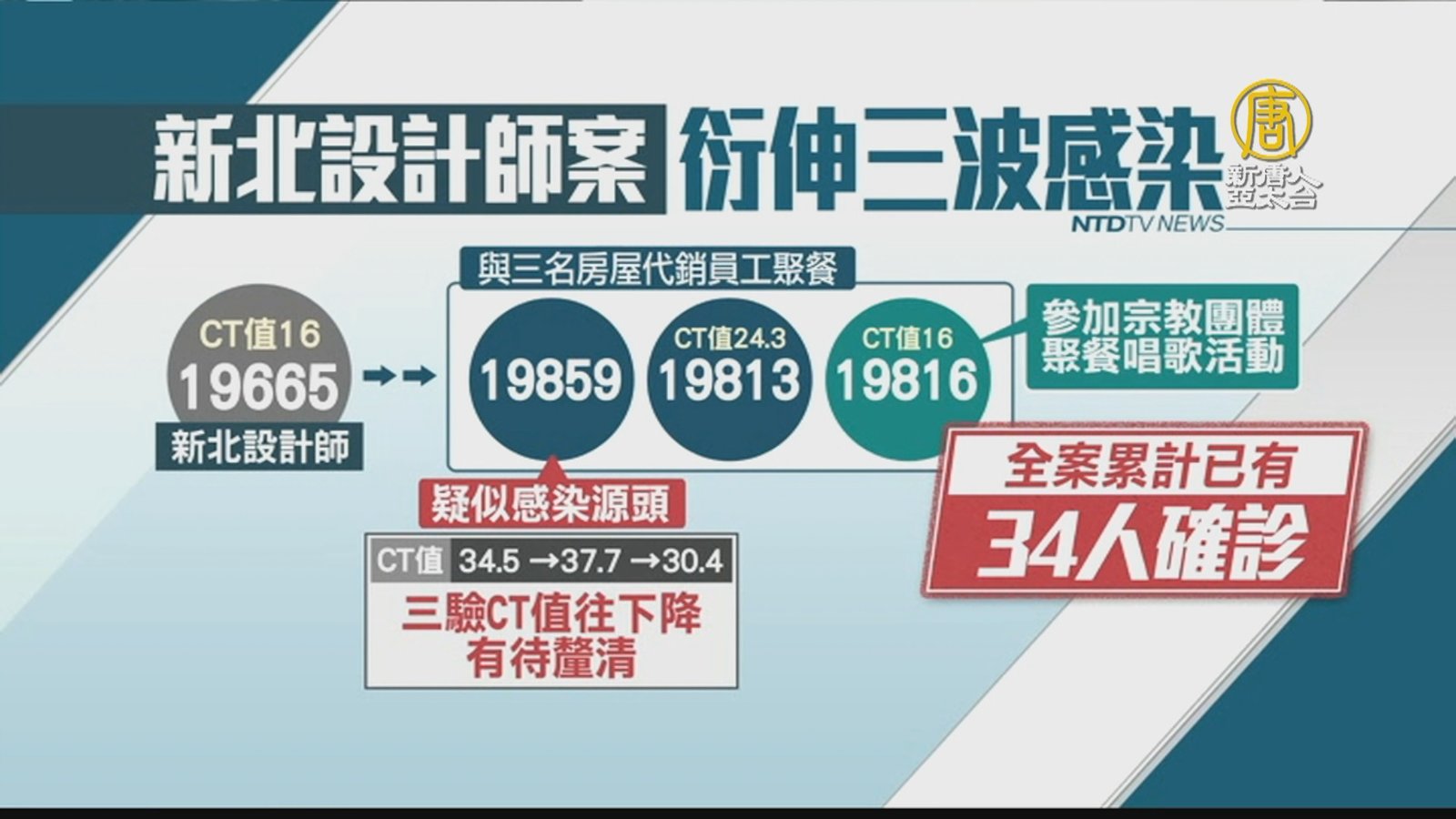 再來關心疫情,台灣今天新增8例本土個案,其中4例與宗教團體群聚案有關,有3位參與聚會的成員,隔離期間由陰轉陽,還有1例是曾參與聚餐的新北國中生(案19951)的同學確診。 //asset2.ntdtv.com.tw/public/uploads/assets/2022/02/19/2022-02-19-6210e3b085a8f.mp4 宗教團體|聚餐|指揮中心|群聚|中共病毒|202202192022-02-19 21:21:56