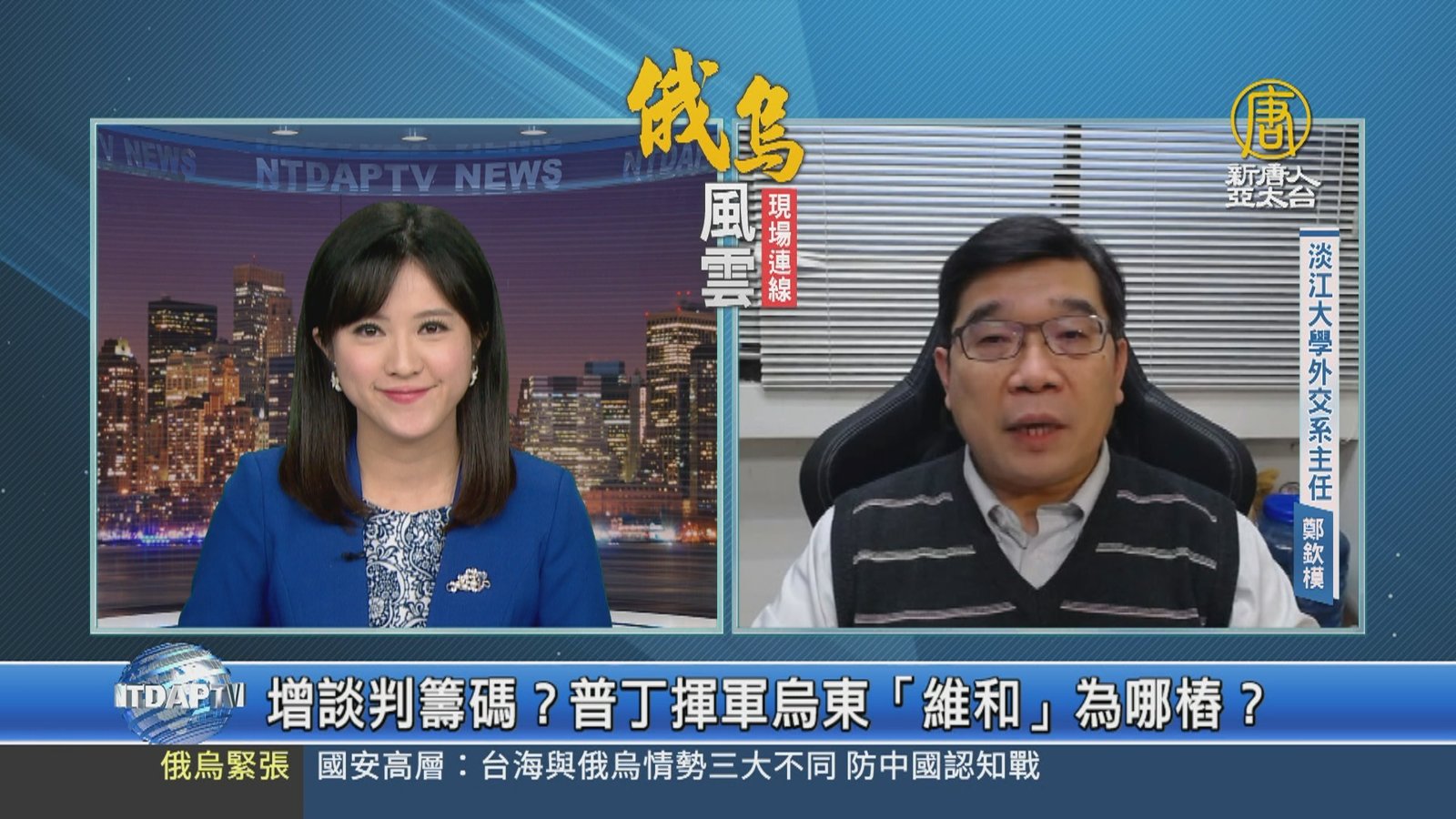 俄羅斯總統普丁突然出手升高情勢,白宮先宣布要制裁分裂的烏東兩地區,但暫時不認定這是入侵。後續走向如何呢?我們請到台灣淡江大學外交系系主任鄭欽模。請教鄭老師,怎麼解讀普丁行動的時間點?而普丁到底在打什麼算盤?怎麼分析接下來局勢? //asset2.ntdtv.com.tw/public/uploads/assets/2022/02/22/2022-02-22-6214d7b12f81a.mp4 俄烏局勢|俄羅斯|烏克蘭|普丁|慕尼黑安全會議|202202222022-02-22 21:47:10