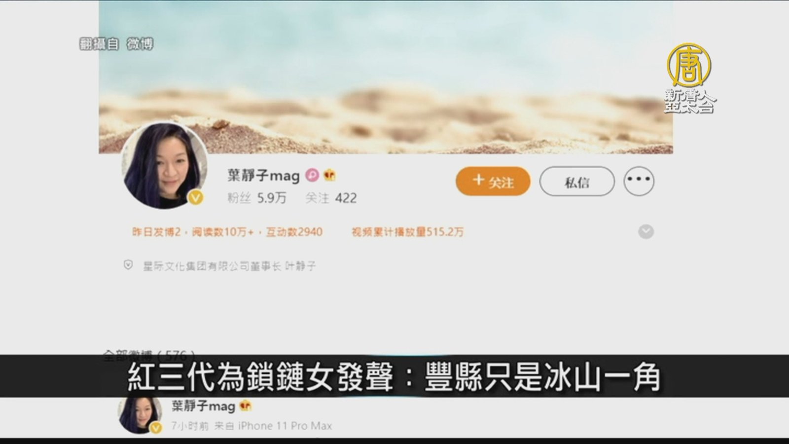 中共元帥葉劍英的孫女葉靜子,日前在微博上為徐州「鎖鏈女」事件發聲,她提到「豐縣肯定只是冰山一角」。截至目前,這是首位「紅三代」為「鎖鏈女」事件發聲,引發輿論關注。網路也流傳,前深圳市委書記厲有為寫了一首打油詩《戰徐州》,聲援「八孩母親」,不過消息尚無法被證實。 //asset3.ntdtv.com.tw/public/uploads/assets/2022/02/22/2022-02-22-6214db761a9be.mp4 中國一分鐘|八孩母|鐵鏈女|中國書店|紅三代|豐縣|葉劍英|葉靜子|北京冬奧|駐華外國記者協會|網路攻擊|美團|閃崩|202202222022-02-22 21:57:02