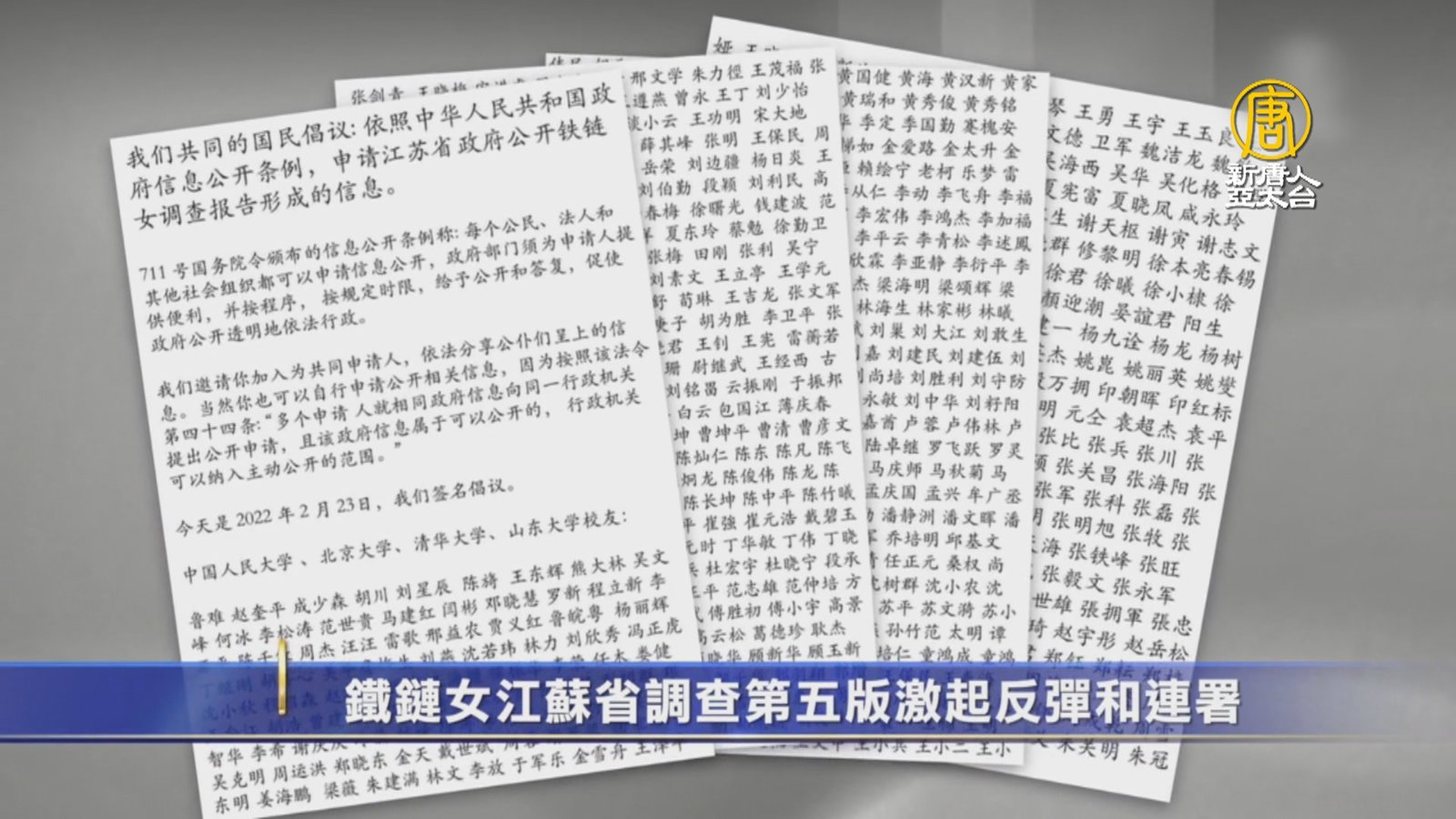 徐州「鐵鏈女事件」江蘇省調查組第五版調查報告公開後,引發民眾憤慨和譴責,人大、北大、清華等八百多位校友呼籲要求江蘇省公布調查報告形成的相關信息。 //asset3.ntdtv.com.tw/public/uploads/assets/2022/02/24/2022-02-24-6217940b538c1.mp4 中國人口拐賣婦女|兒童失蹤|李瑩|八孩母|徐州|鐵鏈女|江蘇省調查組|民憤|202202242022-02-24 22:28:27