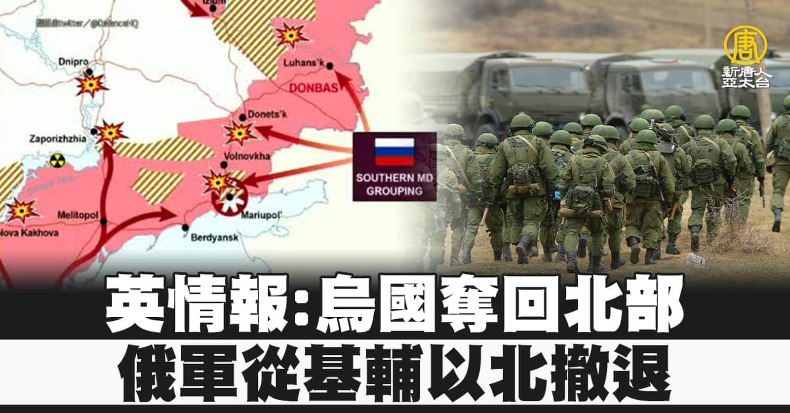 來看到,俄羅斯進攻烏克蘭來到第42天,位於中南部的聶伯城區域首長指出,俄軍5日晚間對第四大城 彼得羅夫斯克市發動了數次空襲行動,砲彈擊中了當地一間油庫與工廠,大火延燒8個小時才被撲滅,所幸無人員受傷。而專門製作烏俄戰爭地圖的推特用戶,也繪製6日最新戰況動圖顯示,紅色區塊的俄軍已經全數撤離烏克蘭首都基輔週圍的北部城市,並局部往東南方移動。烏克蘭武裝部隊總參謀部則警告,俄軍計劃透過具有侵略性的軍事行動,「全面掌控」烏東頓內茨克及盧甘斯克地區的領土。 //asset2.ntdtv.com.tw/public/uploads/assets/2022/04/06/2022-04-06-624d885feaba3.mp4 俄烏局勢|俄羅斯|烏克蘭|聶伯城|彼得羅夫斯克市|202204062022-04-06 22:20:29