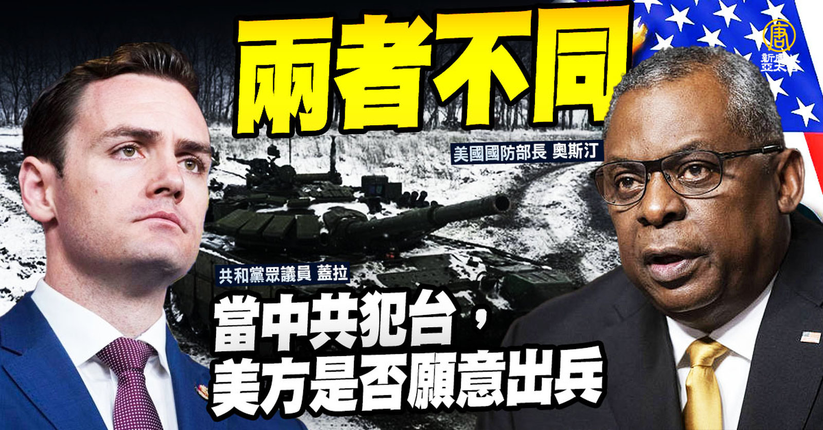 帶您關心,俄羅斯入侵烏克蘭局勢,也引發美國議員擔憂中共犯台的野心,5日在眾議院軍事委員會上,共和黨眾議員蓋拉格詢問國防部長奧斯汀,當中共犯台時,美方是否願意出兵或比照烏克蘭局勢處理,奧斯汀避談是否派兵,但表示,兩者的情況無法比擬。 //asset1.ntdtv.com.tw/public/uploads/assets/2022/04/06/2022-04-06-624d885304e75.mp4 俄烏局勢|俄羅斯|烏克蘭|台灣|中共|對台軍售|奧斯汀|202204062022-04-06 22:20:15