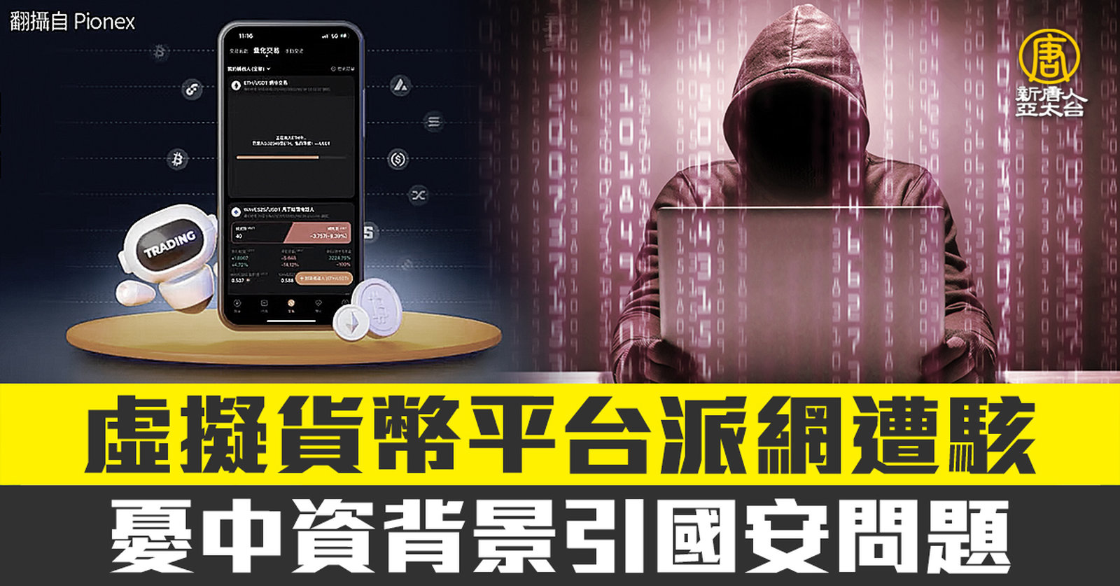 內建量化交易機器人的加密貨幣交易所派網(Pionex)在台落地一段時間,但近日傳出使用者帳戶遭駭,許多用戶的貨幣被無預警提出,有用戶向平面媒體控訴,派網當初透過中國資金創辦,質疑「為什麼可以在台灣合法?」,立委郭國文則擔憂,具有中資色彩的虛擬貨幣平台,不僅是金融層面,更是國家安全上的問題。 //asset3.ntdtv.com.tw/public/uploads/assets/2022/04/12/2022-04-12-62558171cd09c.mp4 台灣速速看|台灣全民國防手冊|戰時應變求生|Pionex|中資|國安|暑假出國|返台免隔離|桂冠圖書|解散|202204122022-04-12 22:29:28