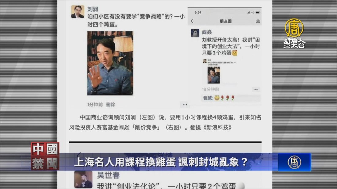 上海名人用課程換雞蛋 諷刺封城亂象?