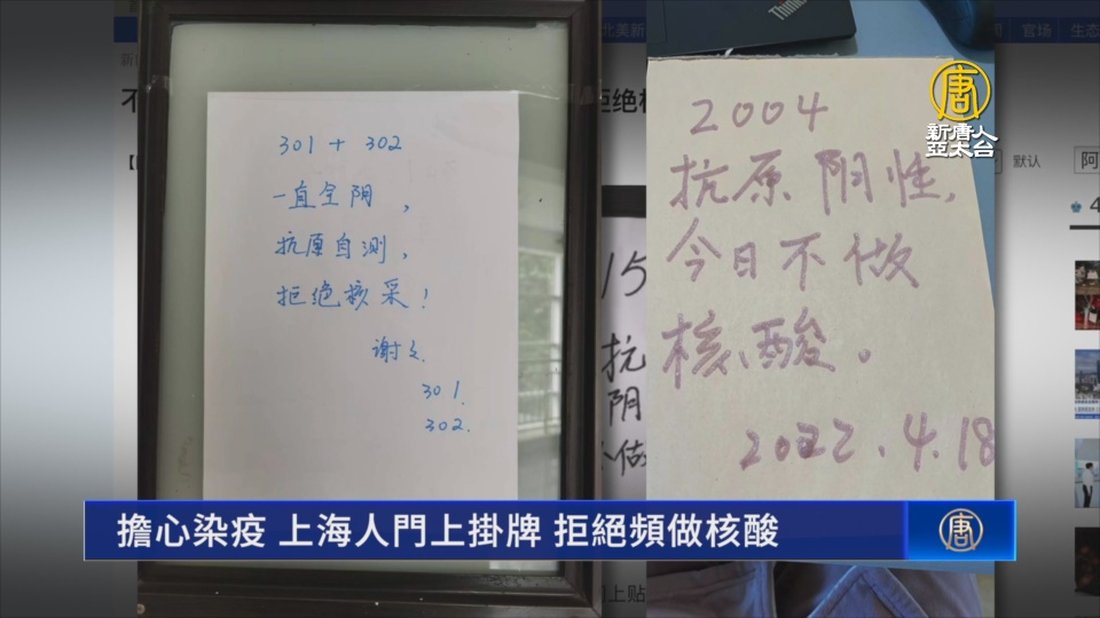 擔心染疫 上海人門上掛牌 拒絕頻做核酸