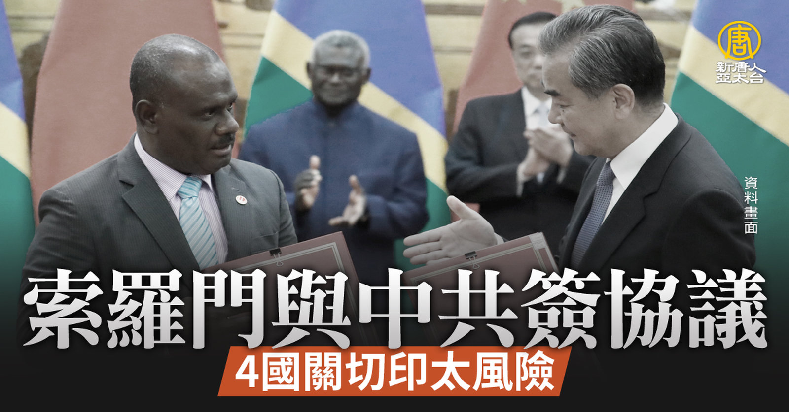 歡迎回來。索羅門群島與中共近日宣布,已經正式簽署一份安全合作框架協議。澳洲政府表示,對索中安全協議的簽訂「深感失望」,總理莫里森指出,印太地區一直存在北京當局干預的隱患。18日,美國、澳洲、日本和紐西蘭官員,在夏威夷召開會議,共同關切索中協議對印太地區造成的風險。美國印太事務協調官 康貝爾與國務院助卿 康達,將在本週訪問索羅門群島。 //asset1.ntdtv.com.tw/public/uploads/assets/2022/04/20/2022-04-20-626004c6e2b15.mp4 太平洋島國|印太戰略|索羅門|澳洲|台灣|莫里森|蘇嘉瓦瑞|戴維斯|202204202022-04-20 22:15:47