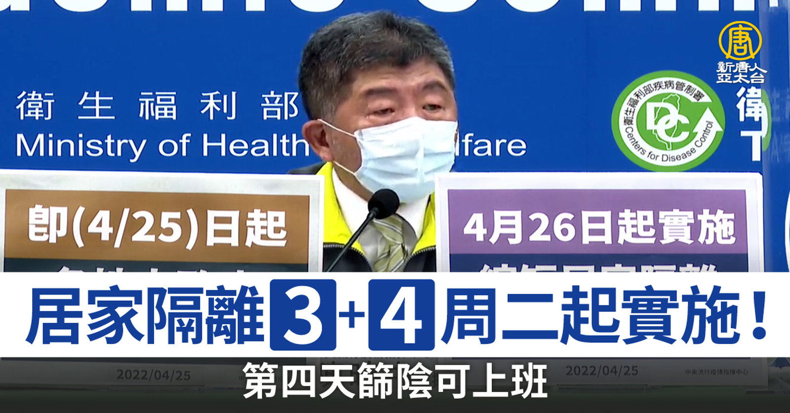 居家隔離3+4周二起實施!第四天篩陰可上班