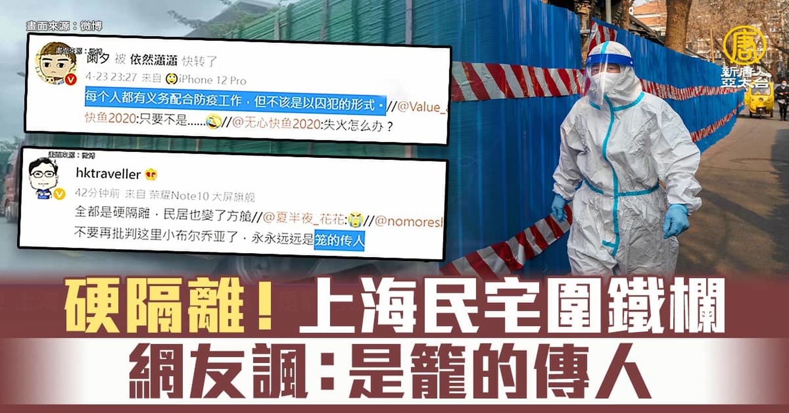 來看到,上海防疫衍伸出各種民生、醫療問題。微博有網友透露,被帶進方艙隔離,環境「連坐牢都不如」。因為方艙空間已經不夠用,官方甚至從外縣市運來鐵柵欄,將居民圍困在民宅裡,引起民怨。有民眾問執行封鎖的人員,萬一民宅「發生火災怎麼辦」,被冷回,「真有火災了,就算沒圍欄你們一個也出不來」。中共防疫態度引起網友批評說,「上海發生的事情,任何城市都會發生,但來不及發出聲音就被消滅了」、「每個人都有義務配合防疫,但不該是以囚犯的形式」、「硬隔離讓民居變成了方艙」,甚至有網友諷刺表示,民眾「永永遠遠是籠的傳人」。 //asset1.ntdtv.com.tw/public/uploads/assets/2022/04/25/2022-04-25-6266a291a9ffe.mp4 中共病毒|方艙|中共|上海|硬封城|202204252022-04-26 13:45:32
