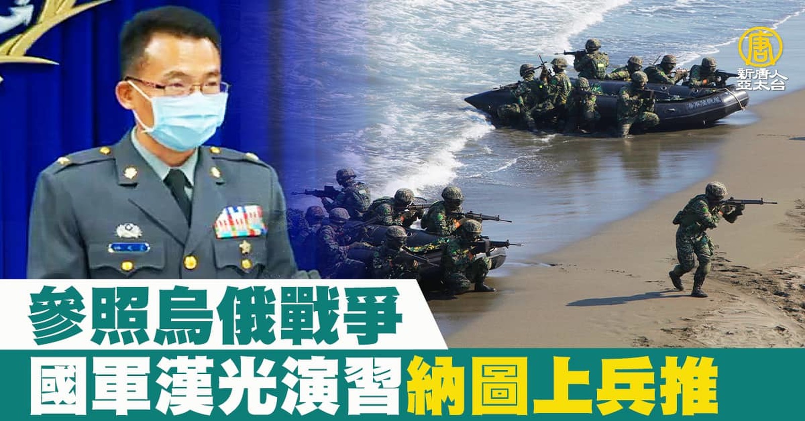 台灣精進不對稱作戰能力,國軍今天(27日)公布年度漢光演習規劃,兩階段分別是5月中下旬的兵推,以及7月底展開5天4夜實兵演練。其中全民防衛圖上兵推,考量防疫,想定共軍各種可能犯台的型態,並參酌烏俄戰爭啟示,檢視作戰計畫。 //asset1.ntdtv.com.tw/public/uploads/assets/2022/04/27/2022-04-27-6269346f3aba3.mp4 國軍|漢光演習|國防部|兵推|全動署|不對稱作戰能力|202204272022-04-27 22:05:51