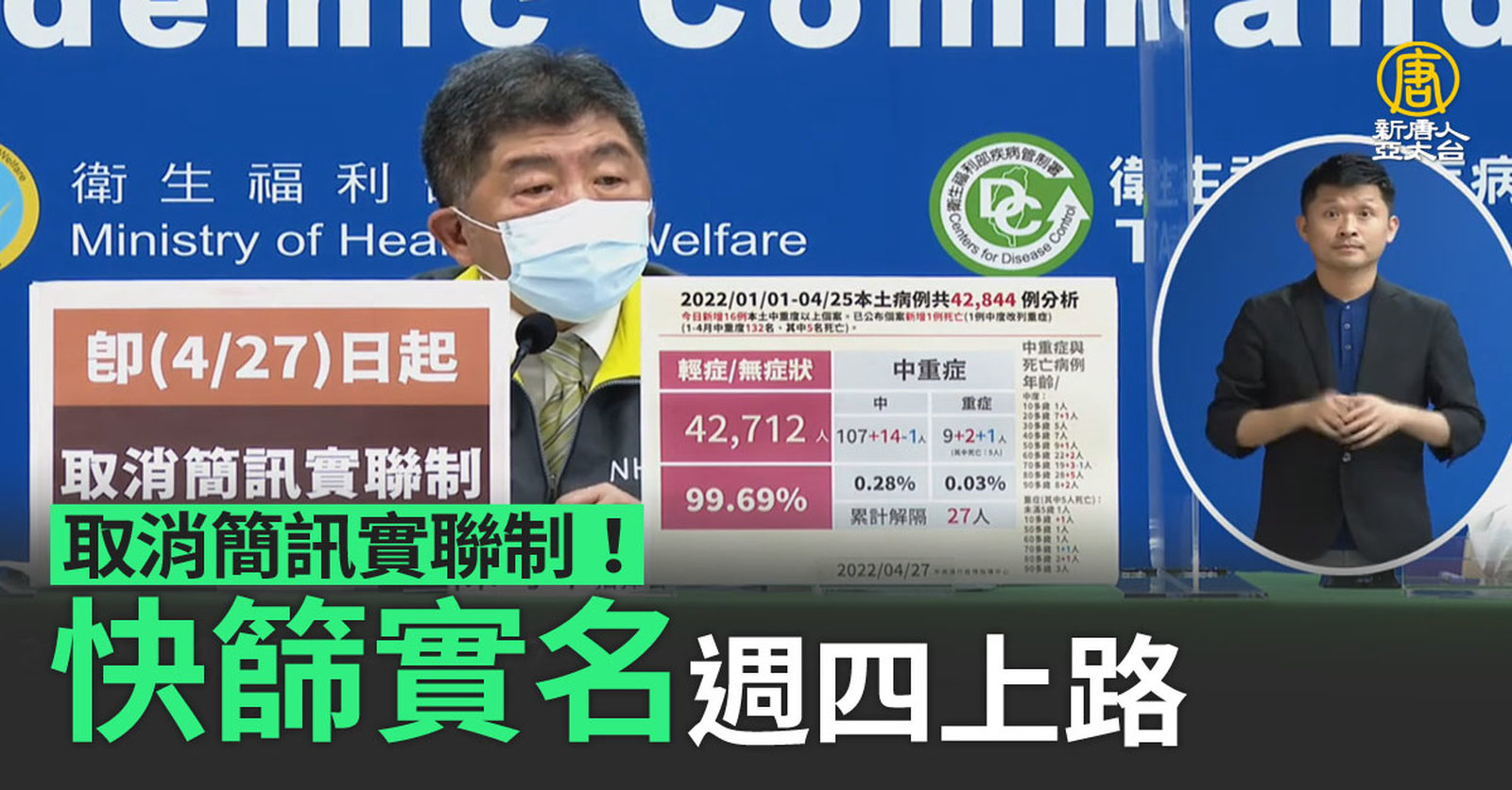 指揮中心取消簡訊實聯制 快篩實名週四上路